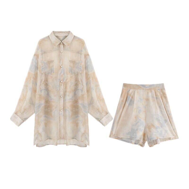 ファッションスーツ女性2020夏ネットレッドエインスタイル長袖日焼け止めシャツワイドレッグショーツツーピースタイド ロング サマー 夏物 ブルマー yingd3864699182