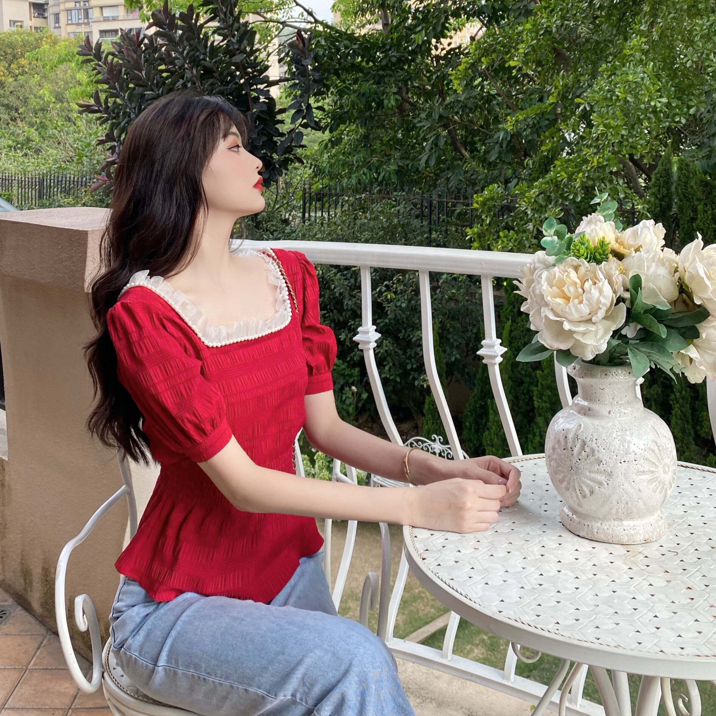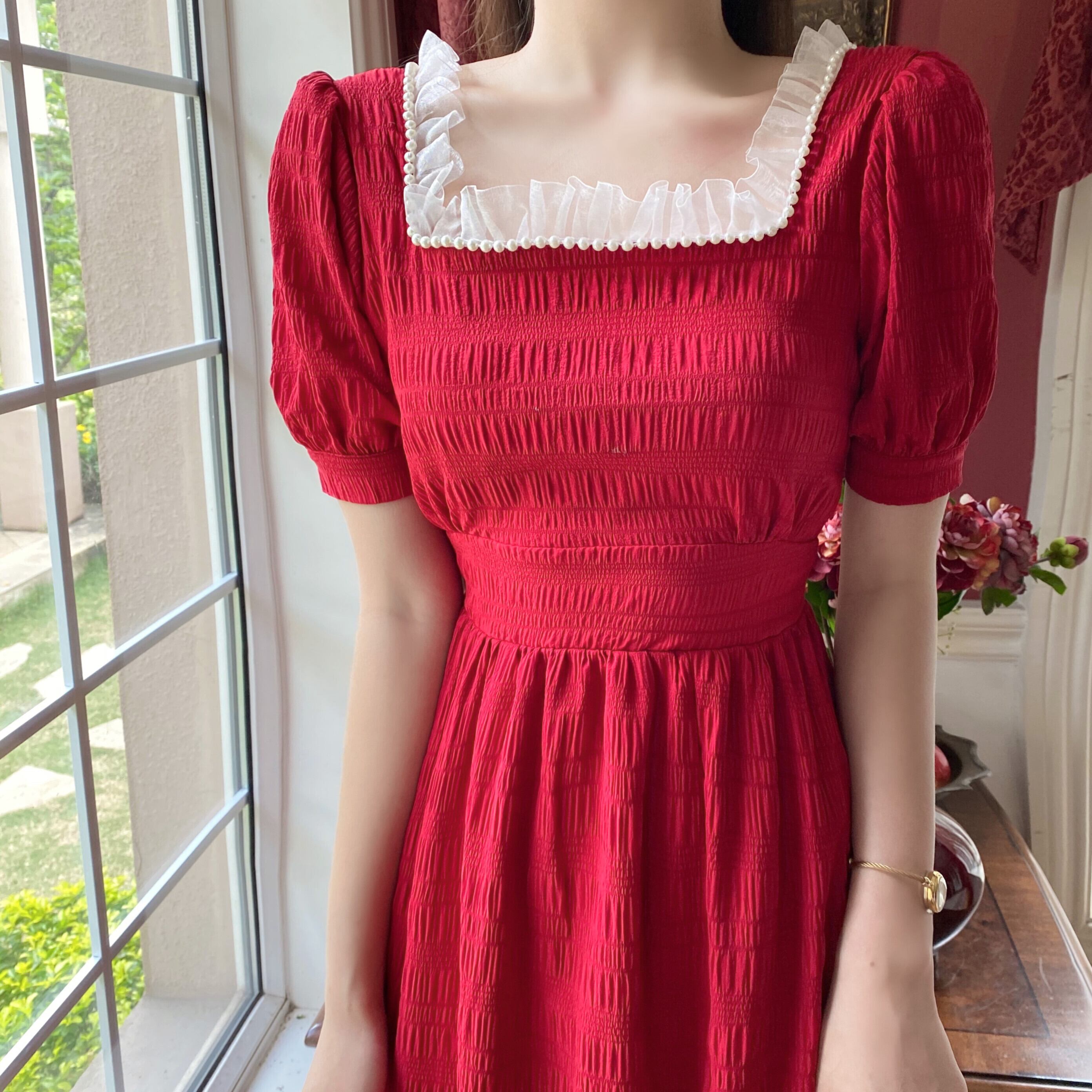 フレンチニッチレトロスクエアネックパフスリーブドレスレディースサマードレス2020ニューウエストとスリム気質ロングスカート 夏物 スクウェア yingd56455884105