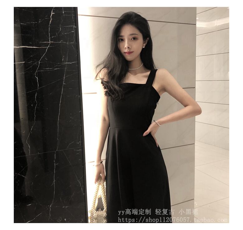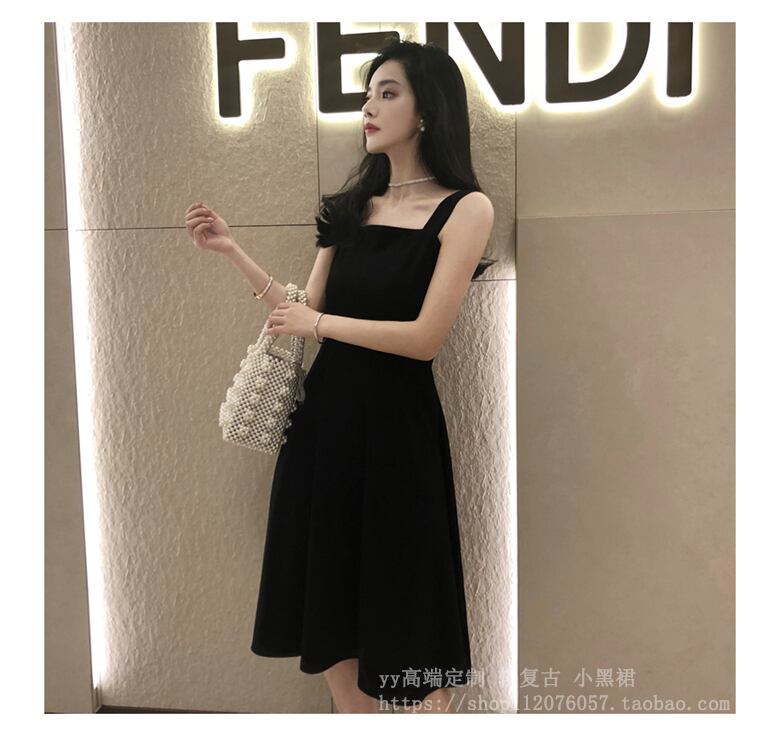 フランスのレトロなヘップバーンスタイルのスリングリトルブラックドレスウエストと薄い気質のデザインセンスブラックスリングドレス女性の夏 サマー 夏物 yingd66956606901