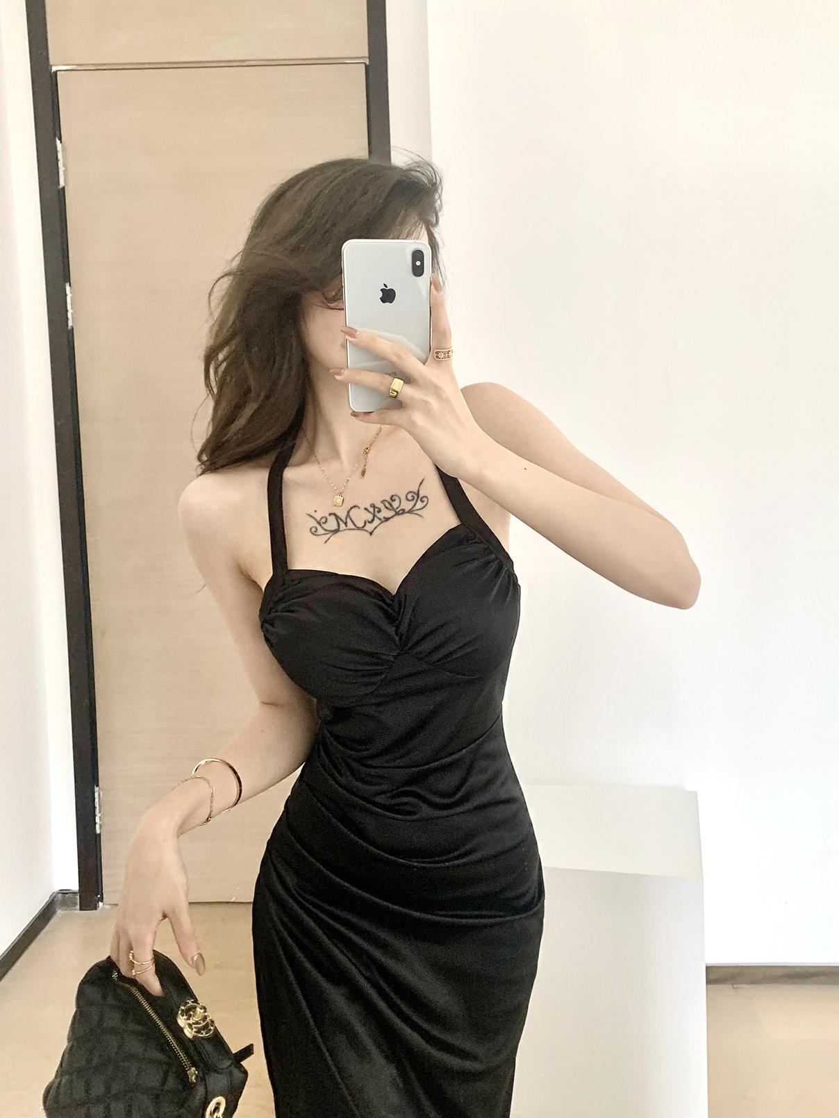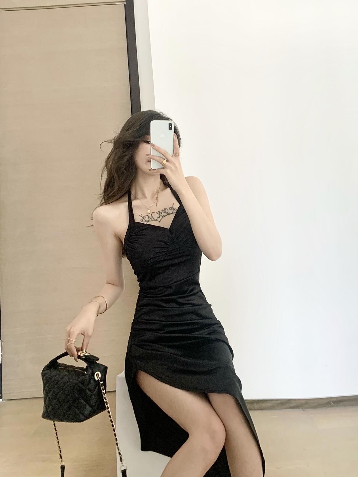 シックなハイエンドの見事なスカート女性の夏フランスの女性ロイヤルシスターライトおなじみのスタイルセクシーなスプリットオープンバックホルタードレス サマー 夏物 スカート yingd25638479212