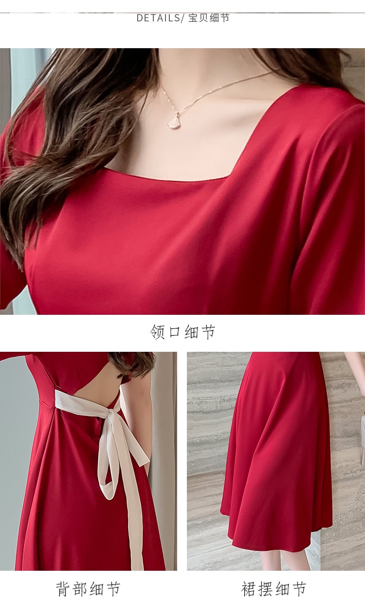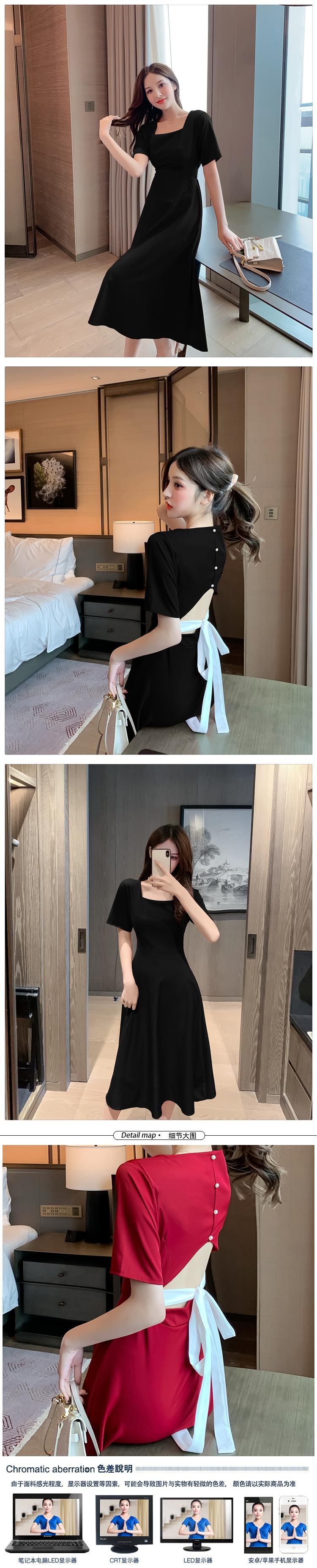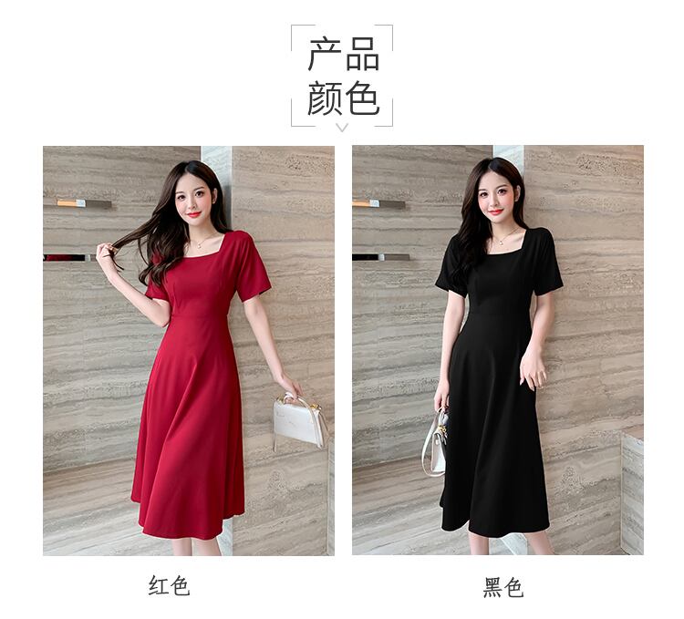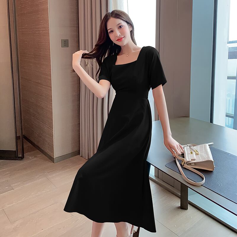 サマードレス2021新しいフレンチレトロヘップバーンスタイルスクエアカラー気質セクシー注意マシンショーウエストドレス女性 夏物 スクウェア yingd21987313926