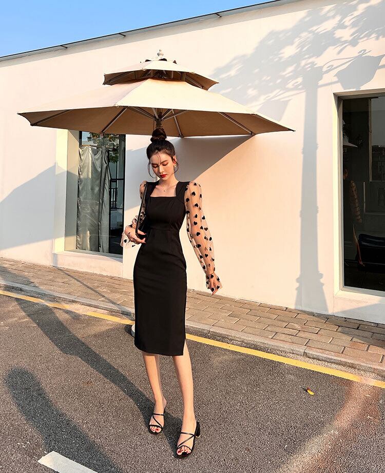 春の婦人服2022新しいシックなハイエンドの見事なスカートスリムフィットと薄いスリットメッシュステッチドレス スプリング 春物 スカート yingd66103137190