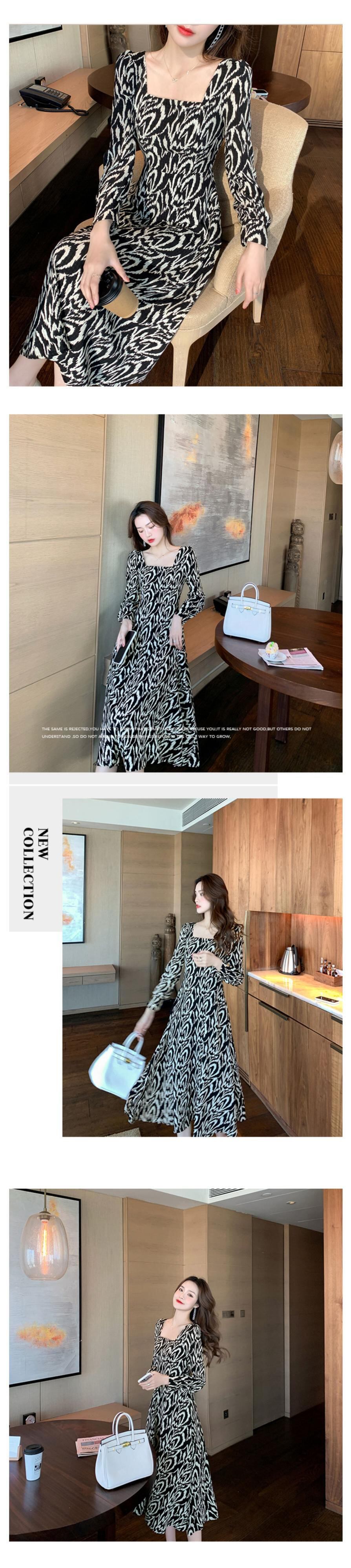 フランスのレトロなヘップバーンスタイルのスクエアカラーの花柄のドレスは薄くて気質の軽い成熟したスタイルの長袖の花柄のドレスの女性です ロング スクウェア yingd83148279727