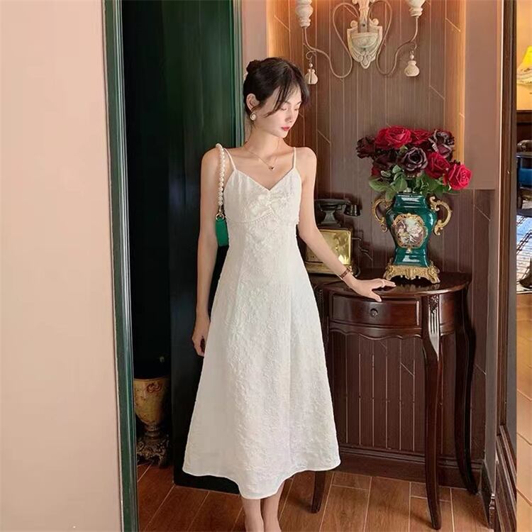 -純粋な欲望の終わりの感覚ティーブレイク初恋サスペンダースカートウエストと薄い気質の女神ファン白いサスペンダードレス女性の夏 ホワイト サマー 夏物 ピュア yingd88856202920
