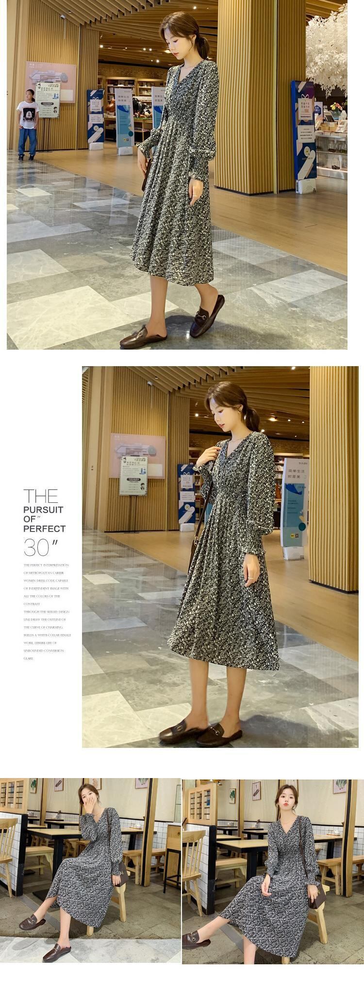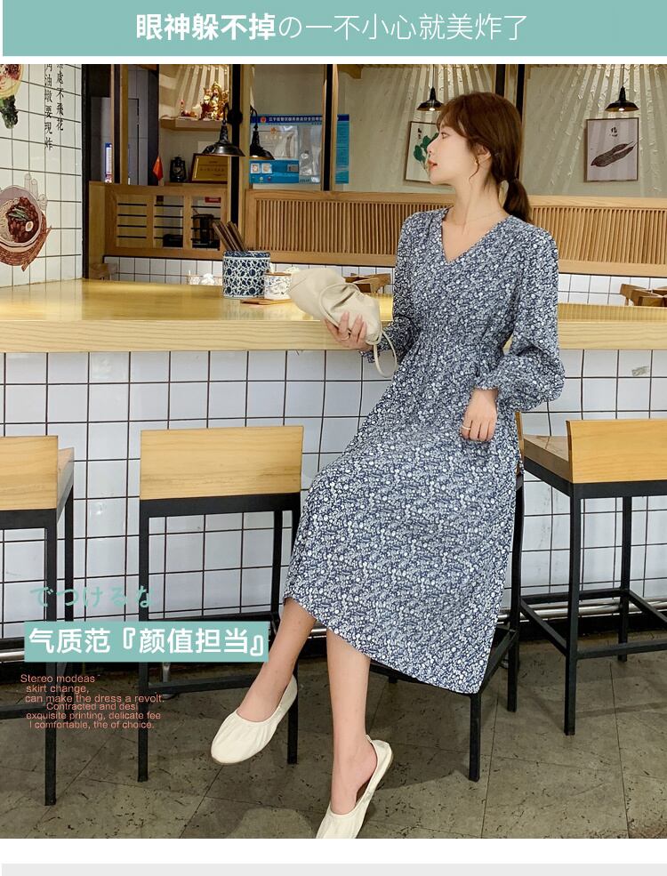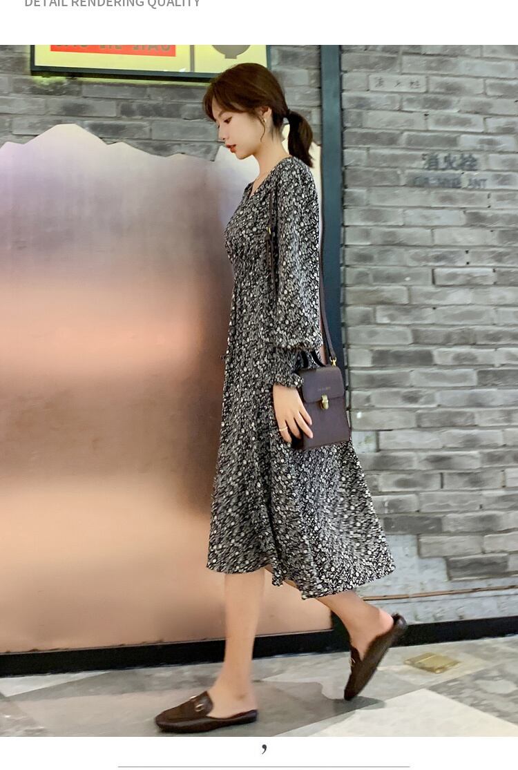 2021年春の新作レディースフレンチレトロコールドウィンドハイエンドVネック長袖シフォンフローラルドレスレディース ロング スプリング 春物 花柄 yingd20629796143