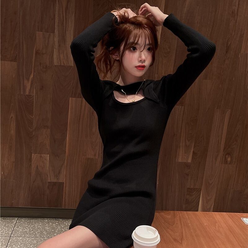 フレンチシックなデザイン、丁寧な機械、純粋な欲望、自己啓発、スリムな気質、セクシーなヒップニットドレス、女性の春 スプリング 春物 ピュア yingd37229484352