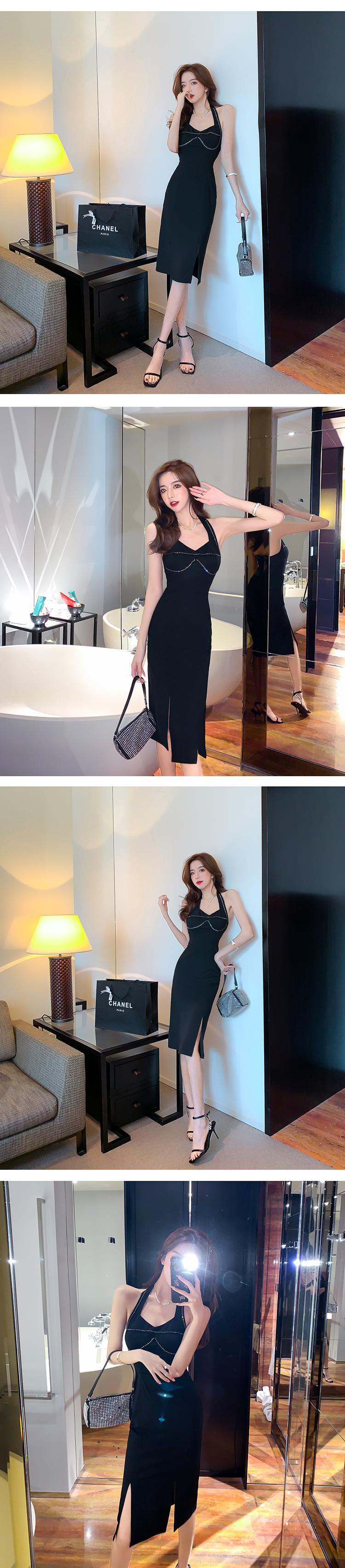 気質、女性らしさ、セクシーなホルタードレス、女性の夏、ハイエンドセンス、軽くて馴染みのあるスタイル、ホルターネック、ヒップスリット、ミドル丈スカート サマー 夏物 yingd74968248568