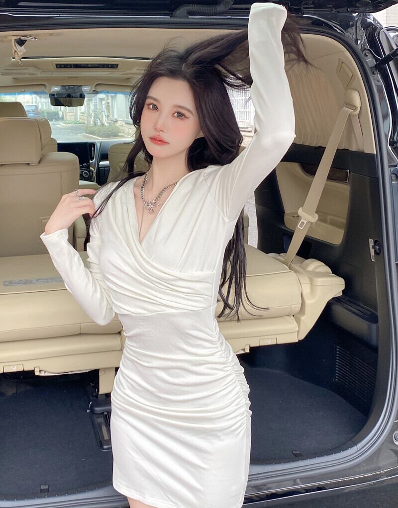 レトロな香港スタイルのシックなデザインセンスクロスVネックYujieライトおなじみのスタイルハイエンドスリムバッグヒップドレス女性の春 スプリング 春物 yingd84128872719