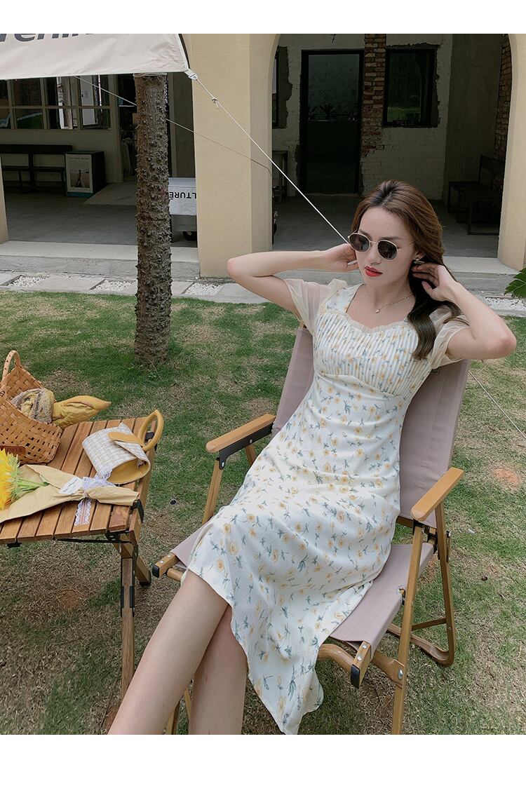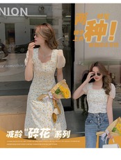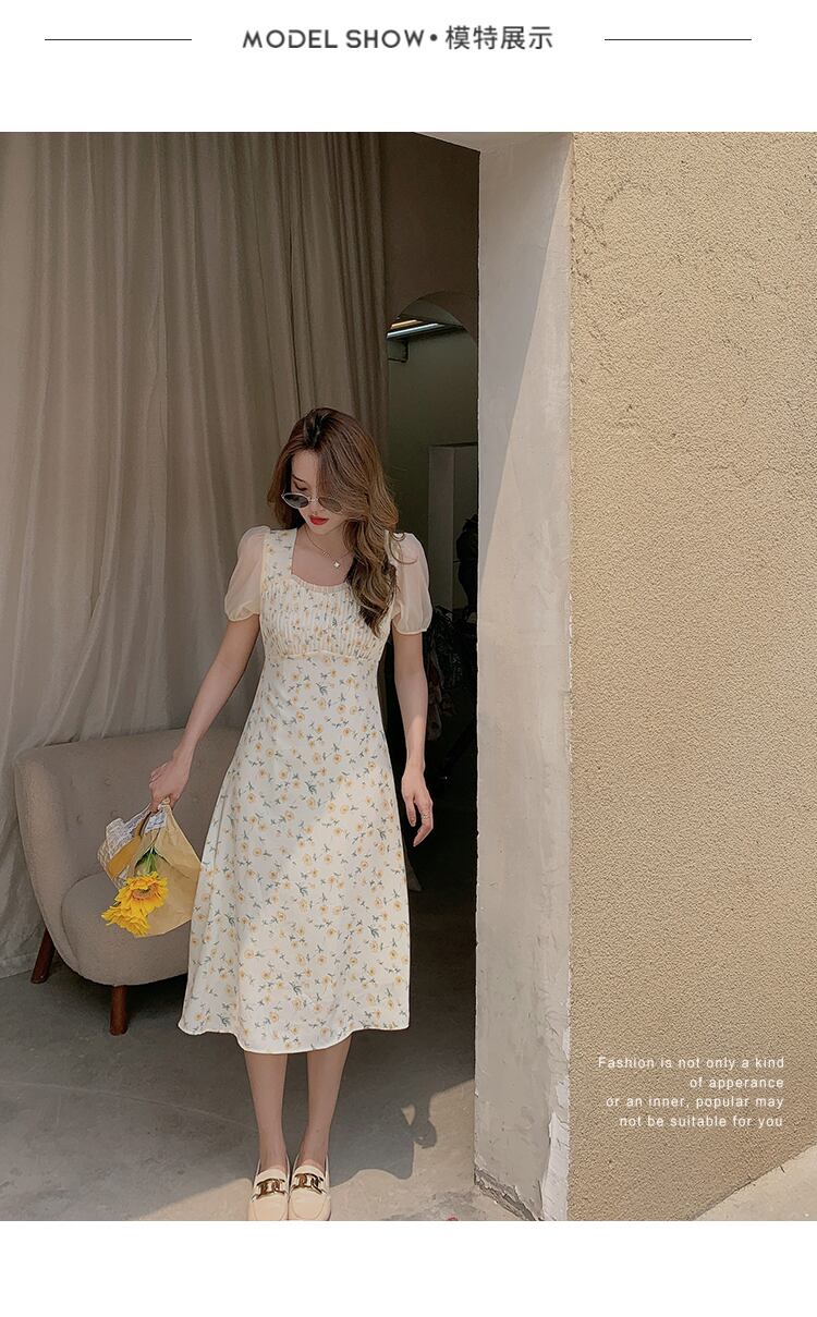 ティーブレイクスカートレディースフレンチレトロデザインセンスニッチウエストは細くて優しい風パフスリーブフローラルドレスレディースサマー 夏物 花柄 yingd49464082187