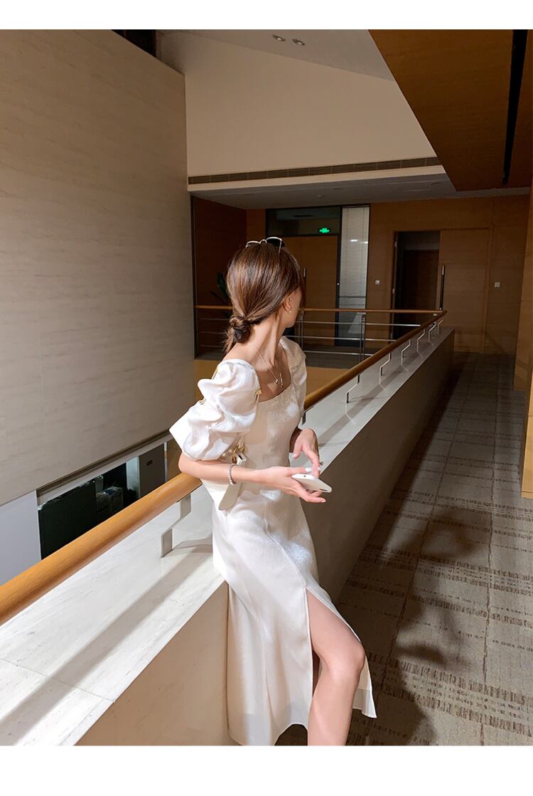 フランスのニッチなレトロなロングドレスは薄くて高品質の女神ファン青州スタイルのスプリットパフスリーブドレス女性の夏 サマー 夏物 yingd78890073055