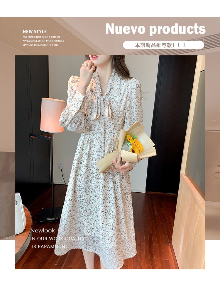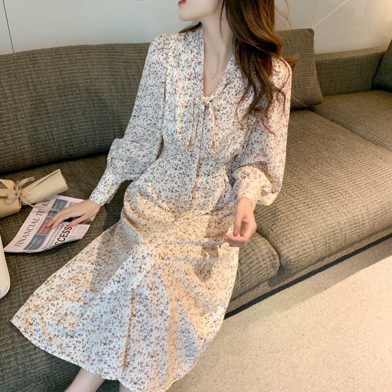 フランスの小さな花柄ドレス2021年春の女性のウエスト細い気質Vネックボトムフローラルロングドレス スプリング 春物 yingd52564488541