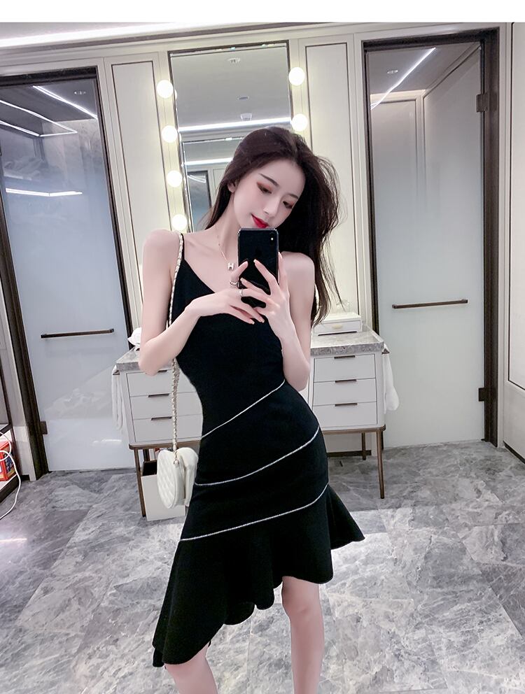 フランスのレトロなサスペンダースカート女性の夏2021新しいデザイン小さな不規則なスリムなサスペンダードレス女性の夏 サマー 夏物 yingd82646337563