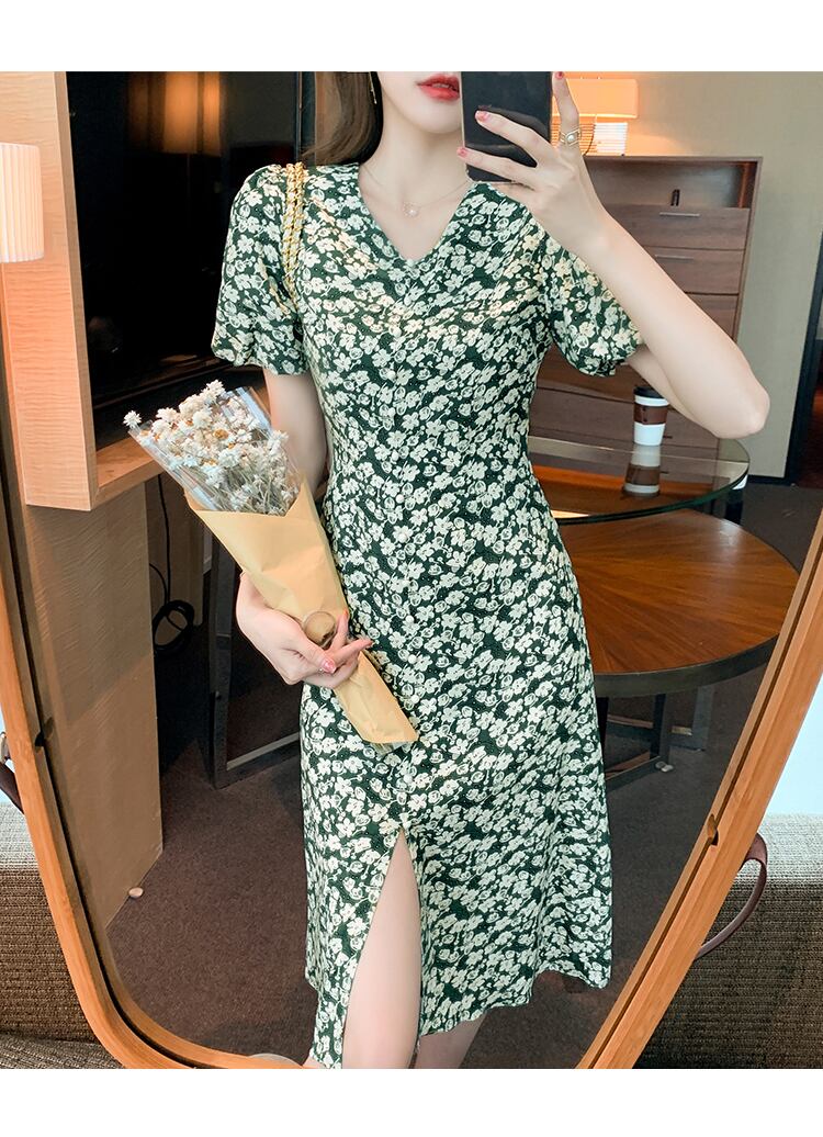 フランスのレトロなベルフラワーティーブレイクフローラルドレスウエストと薄い気質ライト成熟したスタイルスプリットフローラルドレス女性の夏 サマー 夏物 花柄 フラワーデザイン yingd38906594487