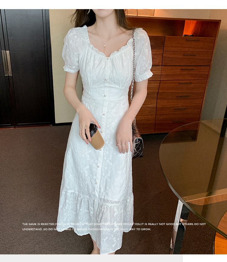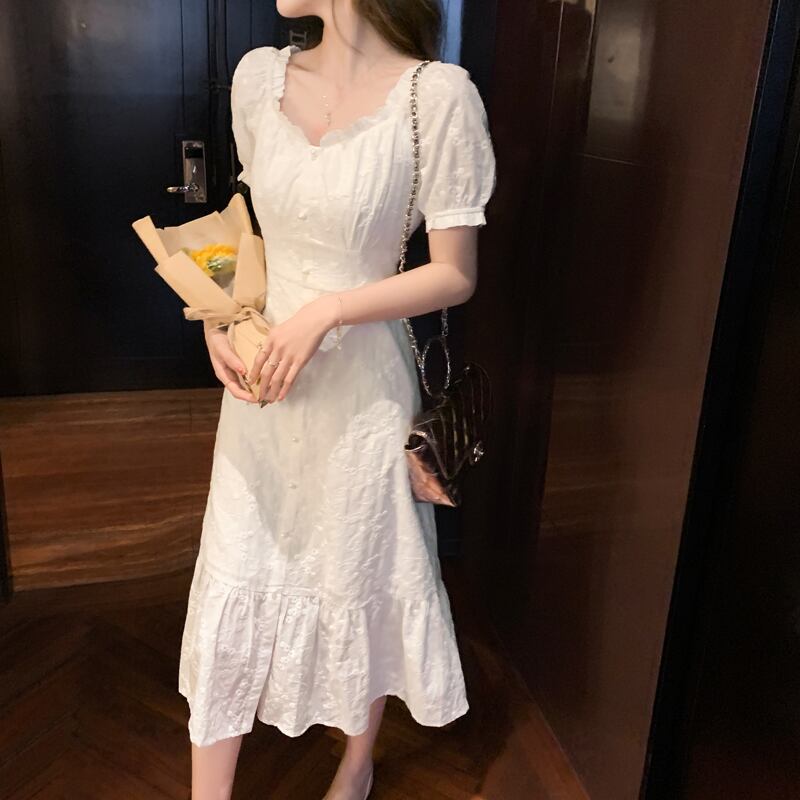 フレンチテリアオレンジ初恋スカートセン部やさしい風ロングスカートウエストは薄手の気質パフスリーブ白いドレス女性夏 ホワイト サマー 夏物 yingd84032545794