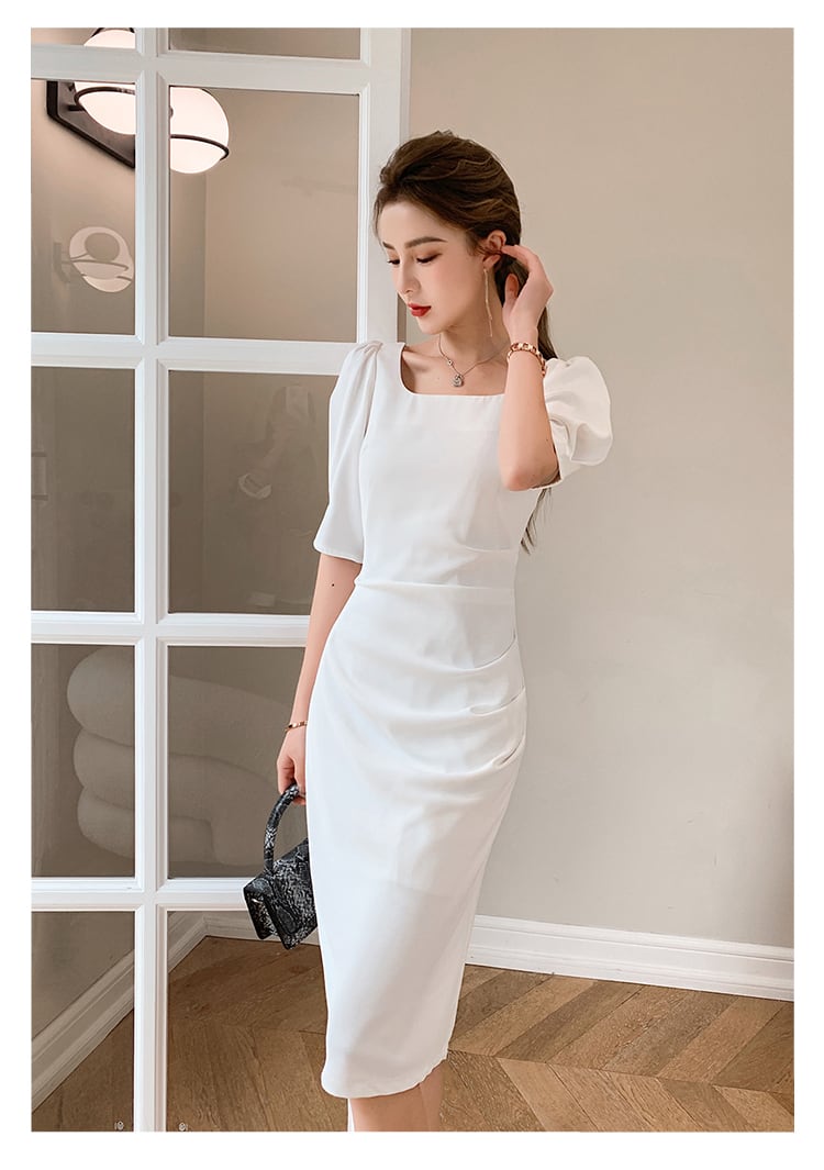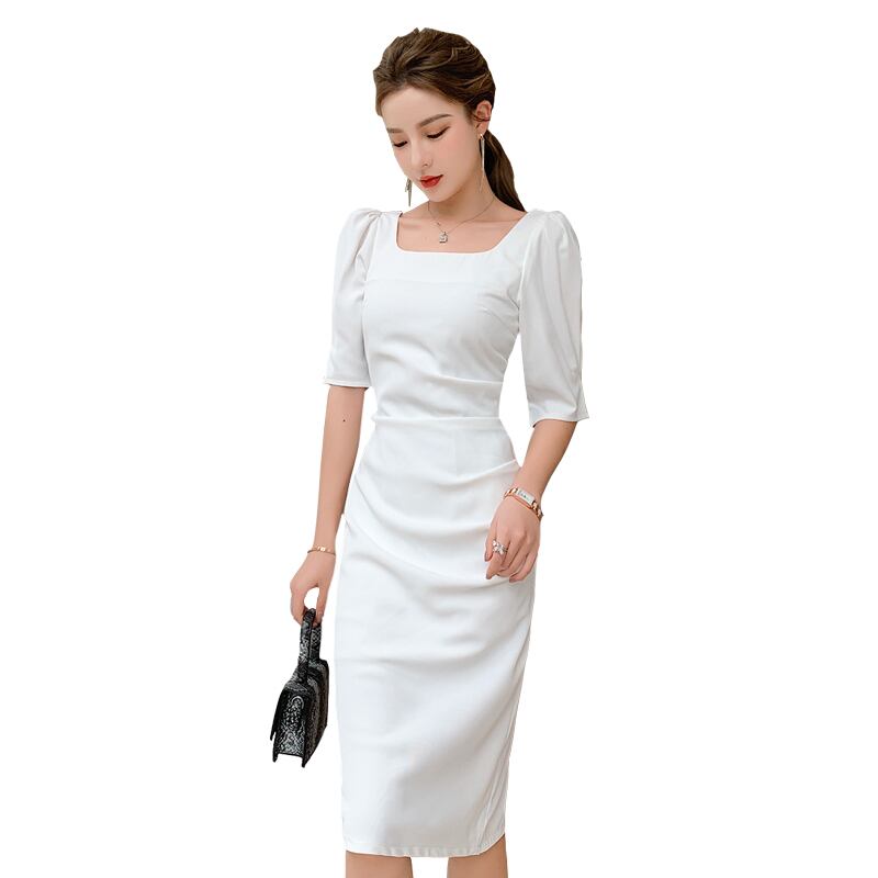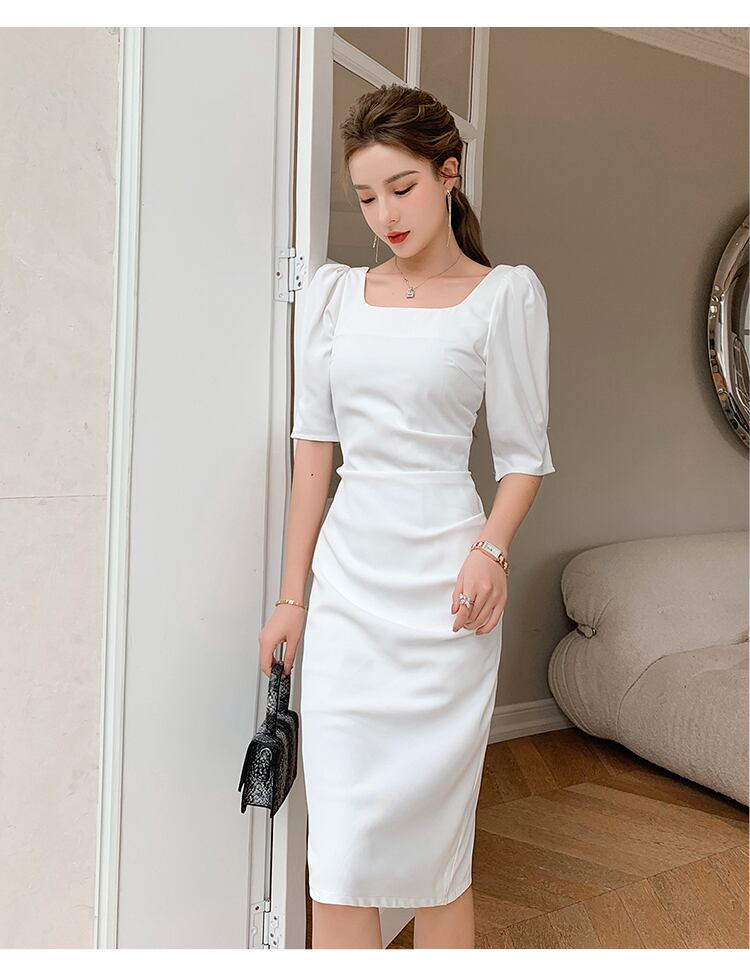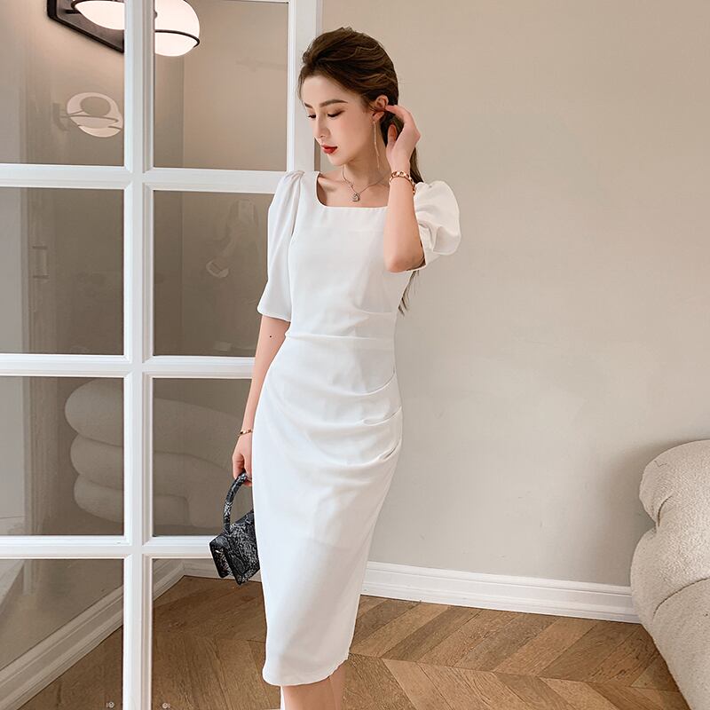 フランスのレトロな冷風女性のハイエンドセンスウエストスリム気質セクシーパッケージヒップスクエアネックドレス女性の夏 サマー 夏物 スクウェア yingd10361273750