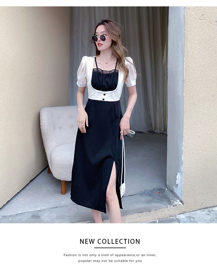 フランスのレトロなデザインのニッチな気質のセンス小さなスカートライトラグジュアリーレディース揚げストリートセクシーなスプリットドレス女性の夏 サマー 夏物 yingd11687519447