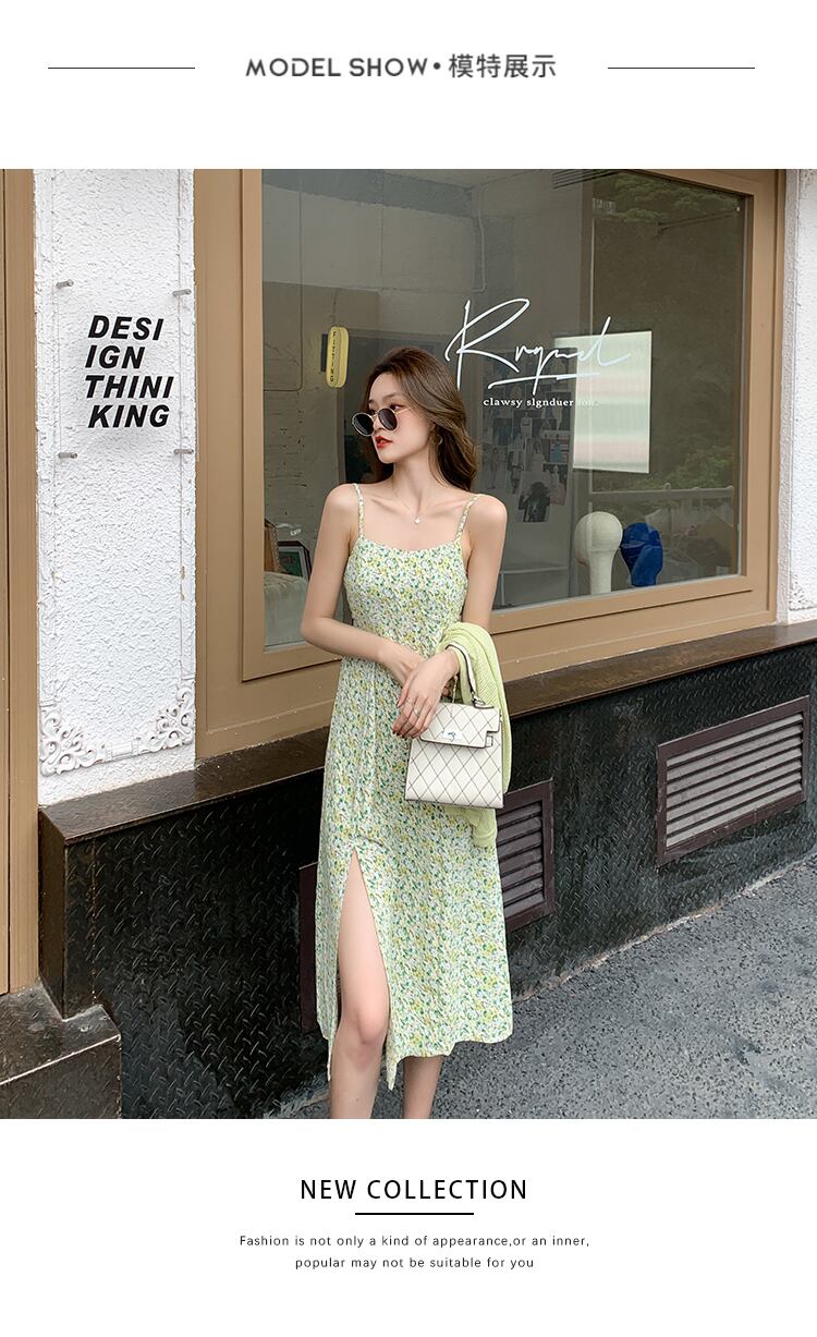 ツーピースサスペンダースカート2021年夏新しいフレンチレトロライトクックドウィンドスプリットシフォンフローラルサスペンダードレスメス サマー 夏物 花柄 yingd54687253854