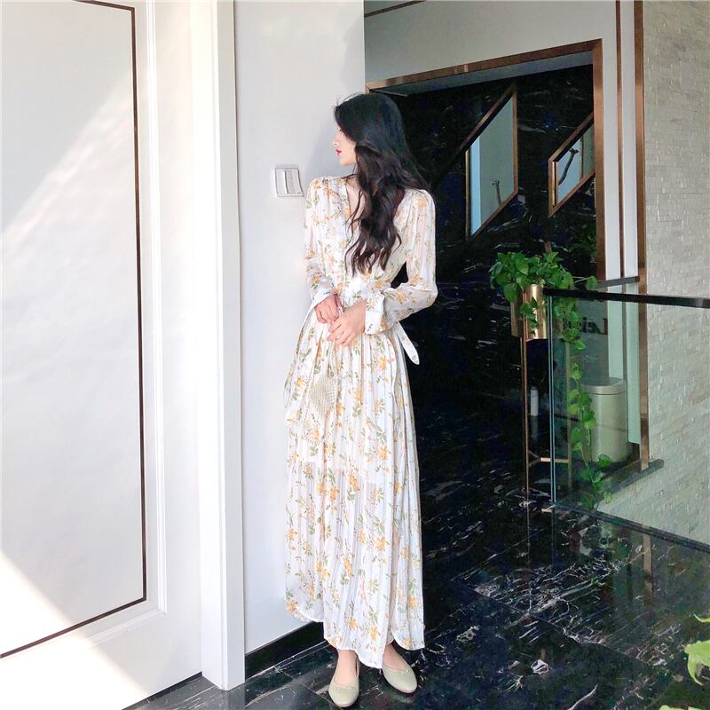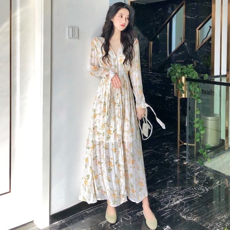 2021年春の新しい女性のフランスのレトロな冷風ハイエンド気質ウエストシフォンフローラルドレスの女性 スプリング 春物 花柄 yingd4554079300