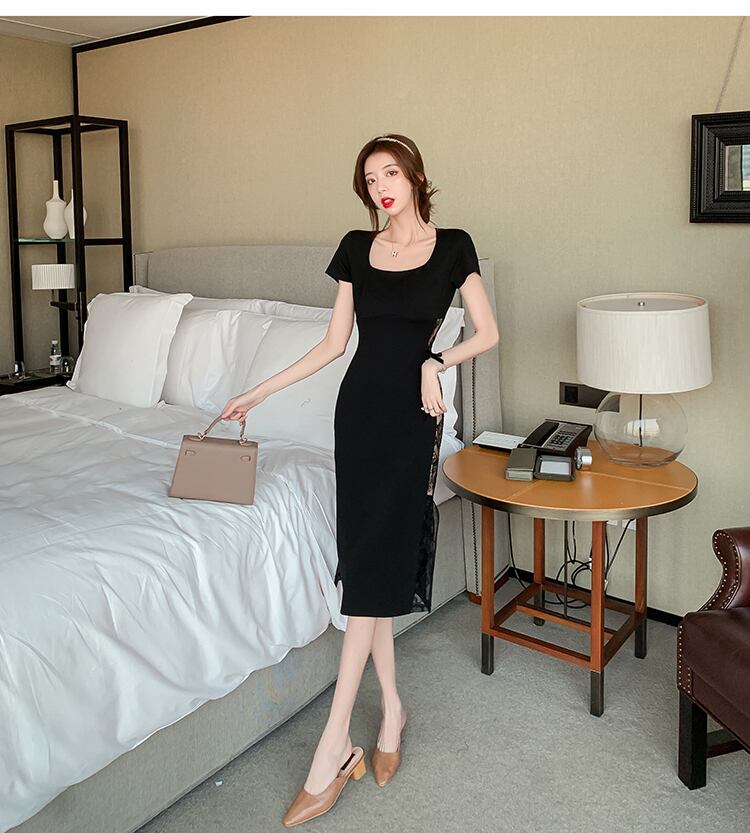 サマードレス2021新しいフレンチレトロヘップバーンスタイルのスリムフィットと薄くて軽くて馴染みのあるスタイルのパッケージヒップスプリット半袖ドレスの女性 夏物 yingd96607786957