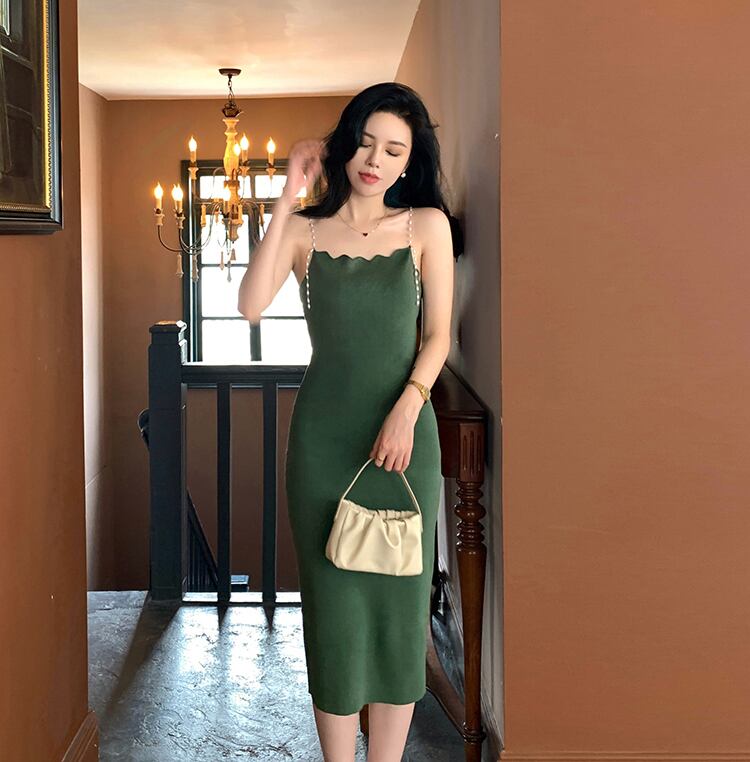 フランスのレトロなデザインセンスニッチアウトサイドウェアサスペンダースカートセクシーなタイトフィットヒップニットサスペンダードレス女性の夏 サマー 夏物 yingd5194102934