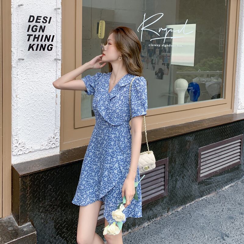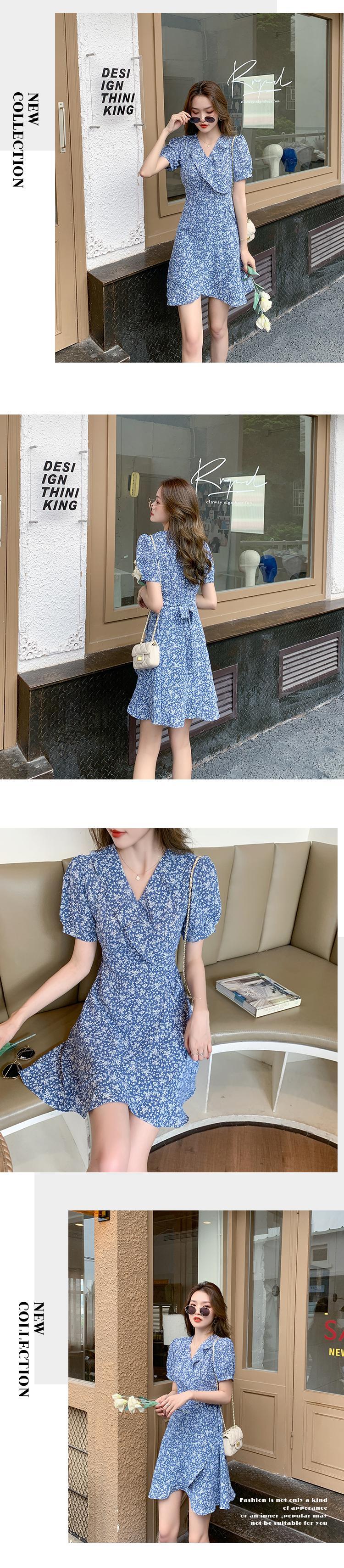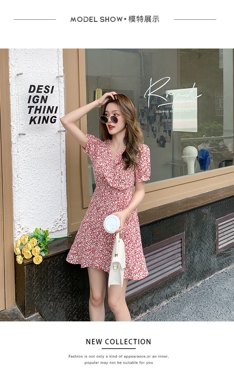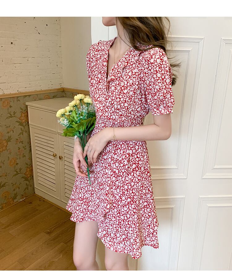 サマードレス2021新しいフレンチレトロウエストウエスト細い気質セクシーなVネック半袖シフォンフローラルドレス女性 夏物 花柄 yingd62767096636