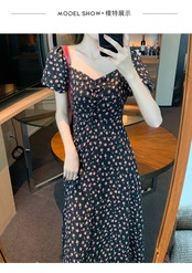 フランスのレトロな揚げストリートティーブレイクドレスフローラルロングスカートウエストスリム気質スプリットスクエアネックフローラルドレス女性の夏 サマー 夏物 花柄 スクウェア yingd3050733861