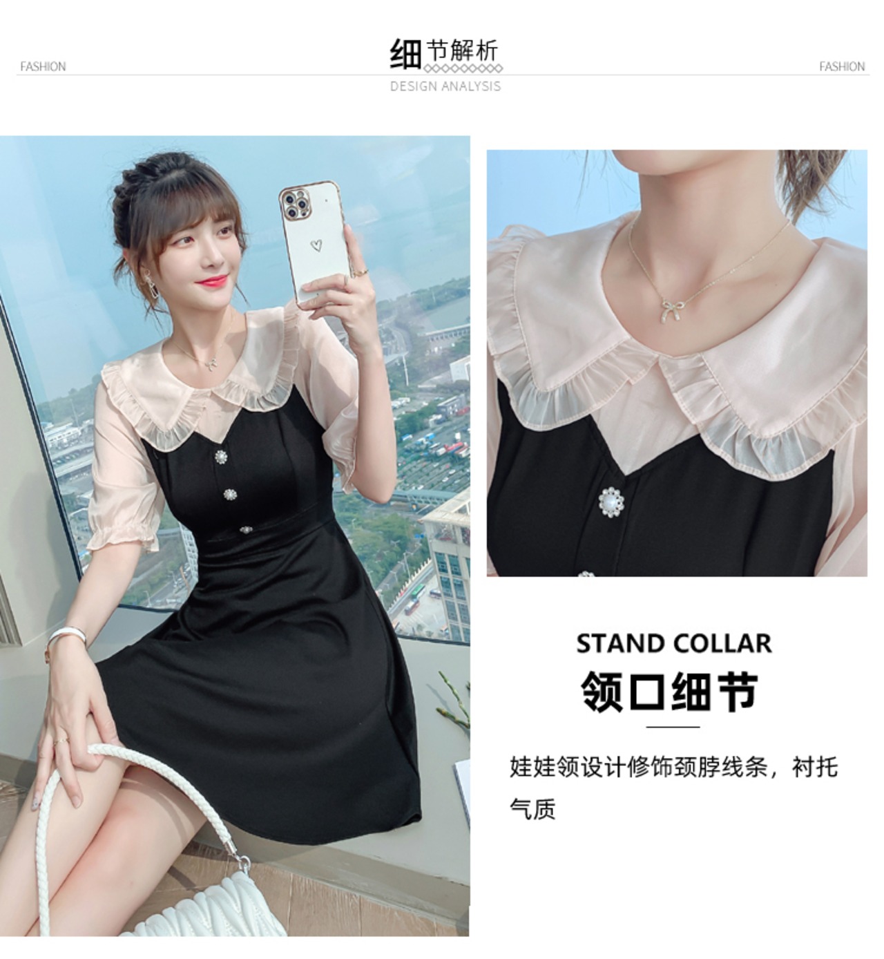 フランスのレトロなヘップバーンスタイルの人形の襟付きの小さな黒いドレスは、薄い気質の小さなスカートを示しています西洋スタイルの年齢を減らすドレス夏のウエスト ブラック サマー 夏物 yingd98256557111
