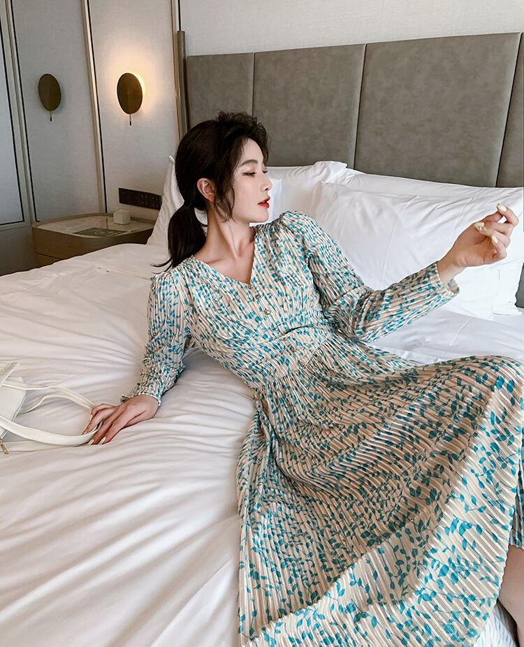 2021年春の新しいフレンチニッチな優しいスタイルのフローラルドレスフェミニンなVネックウエストフローラルドレス スプリング 春物 花柄 yingd35095221480