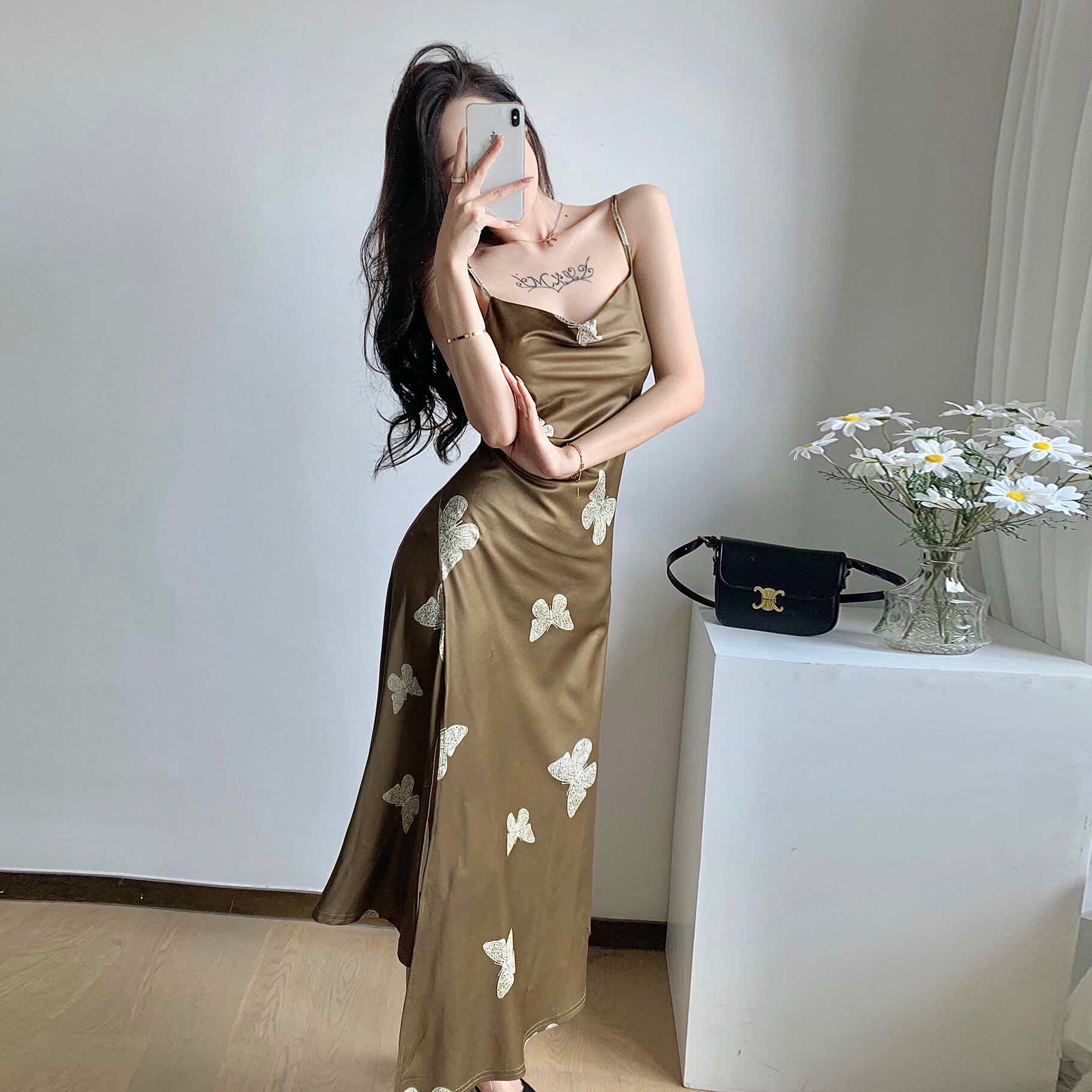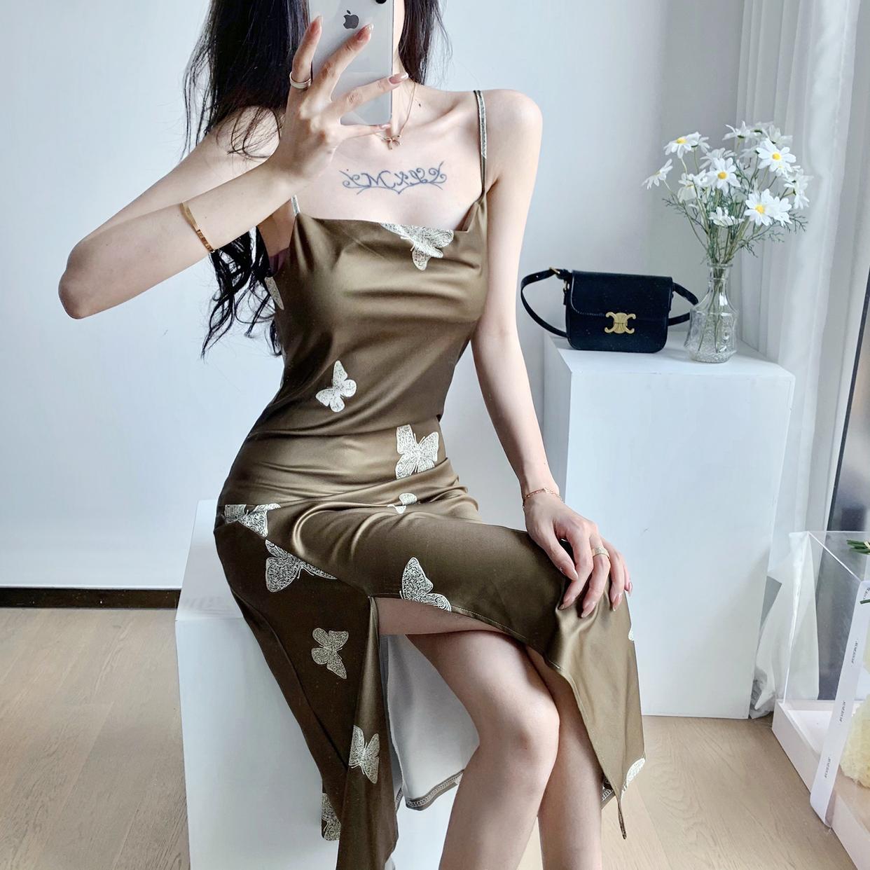 フランスのレトロなロイヤルシスターライトおなじみのスタイルのサスペンダースカートセクシーな自己栽培気質女性らしさスイングカラーサスペンダードレス女性の夏 サマー 夏物 yingd44883390263