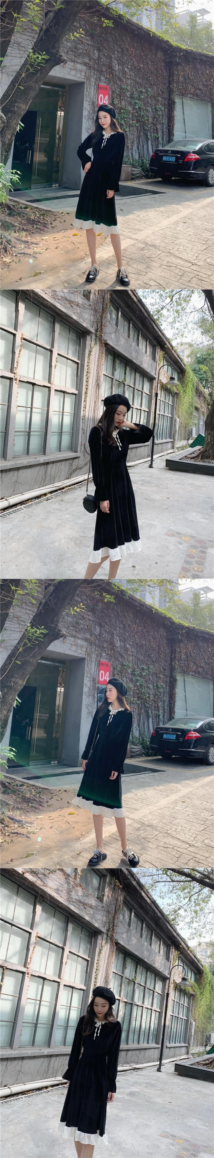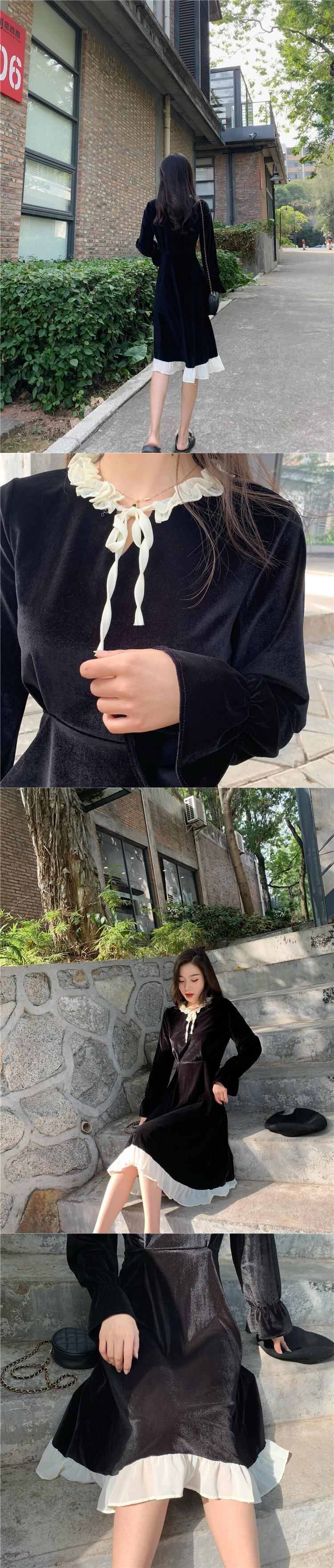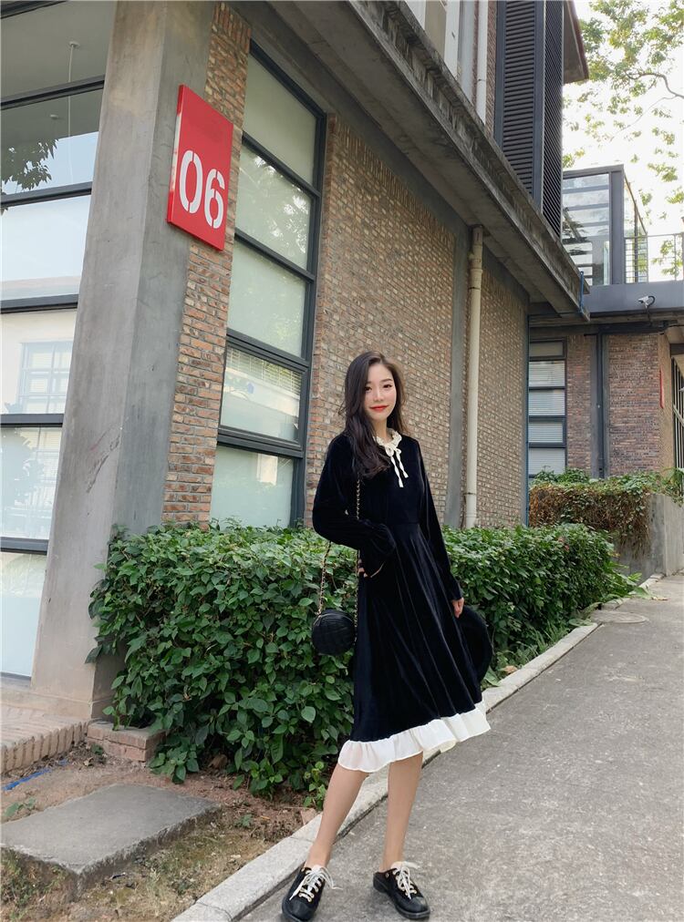 フランスのレトロなヘップバーンリトルブラックドレスの陰謀の気質ウエストは薄い底のミドル丈スカートベルベットドレス女性の秋と冬でした オータム 秋物 ウィンター 冬物 yingd75903253583