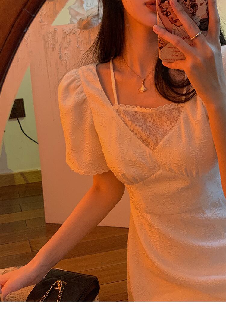 フランスのレトロな小さな男初恋スカート穏やかな風は塩辛くて甘い気質の小さなスカートパフスリーブドレス女性の夏にすることができます 大人ガーリー スウィート キュート カジュアル サマー 夏物 yingd97385876332