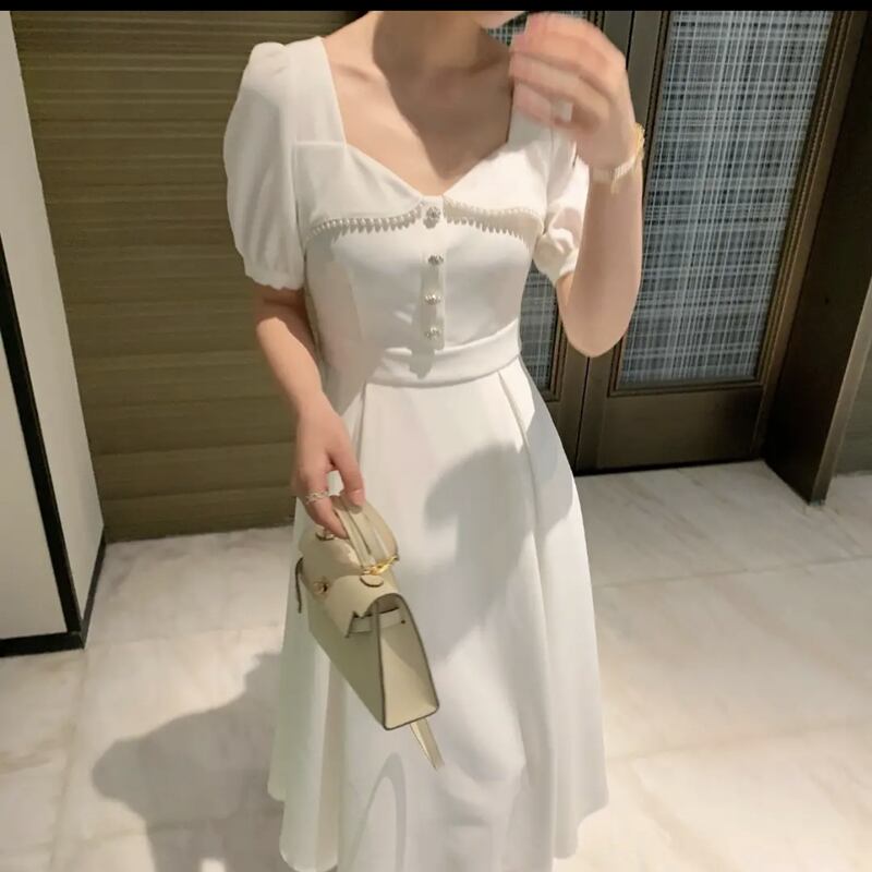 フランスのレトロなヘップバーンスタイルのロングドレス夏の気質ライト高級レディースロイヤルシスターライトおなじみのスタイルデザインセンススクエアネックドレス女性 サマー 夏物 スクウェア yingd61238013156