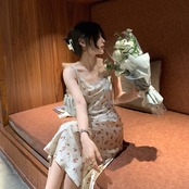 ニッチな外見を取り入れたフレンチレトロフローラルサスペンダードレスハイエンドVネックフローラルサスペンダードレス女性夏 サマー 夏物 花柄 yingd87787130825