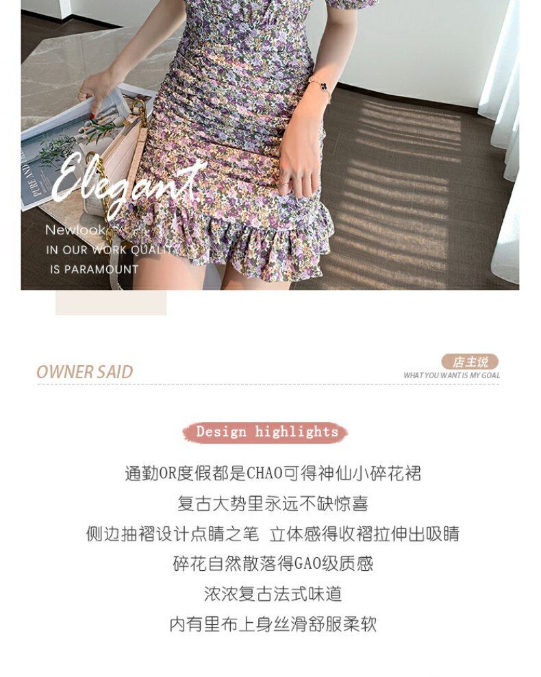 パープルフローラルドレス女性2020新しいフレンチレトロスモールスカートサマースモールデイジーシンフローラルスカート 夏物 花柄 yingd1923785756