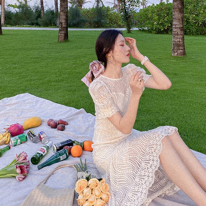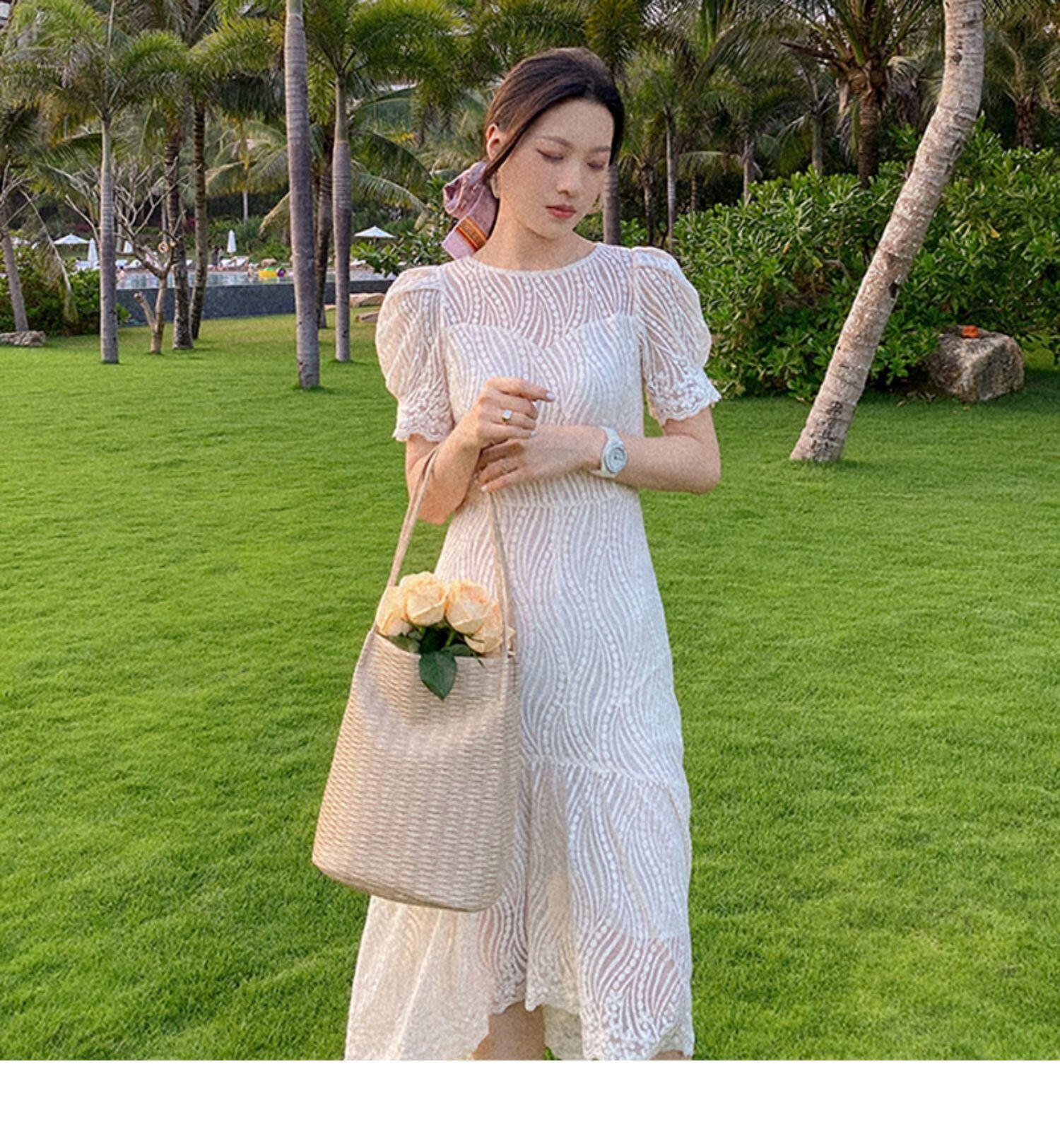 優しい風、初恋、小さな白いスカート、ウエスト、薄い気質、冷たい風、高級な白いレースのドレス ホワイト yingd123736584