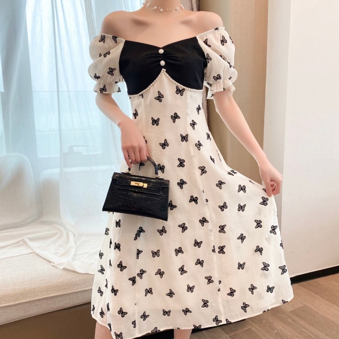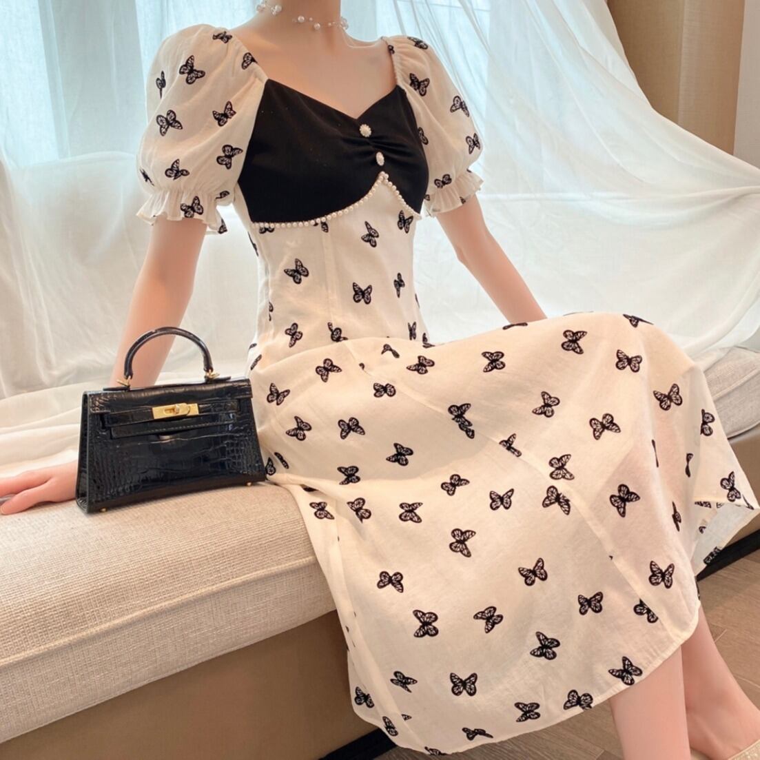 フランスのレトロな桔梗初恋妖精スカート超妖精のような気質小さなスカートデザインセンスステッチドレス女性の夏 サマー 夏物 フラワーデザイン yingd13103282354
