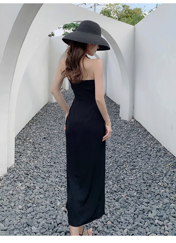 フランスのレトロなヘップバーンスタイルのロングドレス夏のデザインセンスニッチロイヤルシスターライトおなじみのスタイルセクシーな背中の開いたホルタードレス女性 サマー 夏物 yingd31204325119