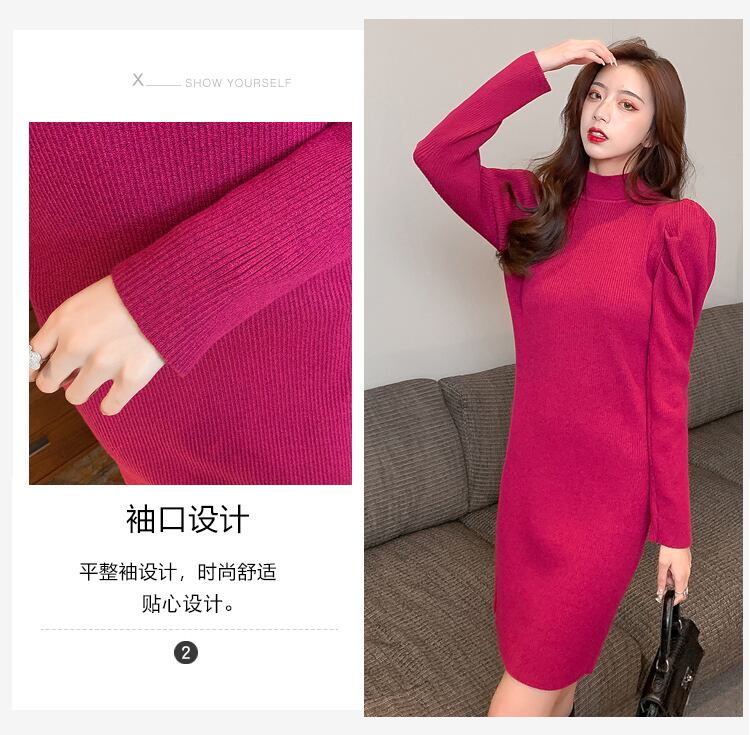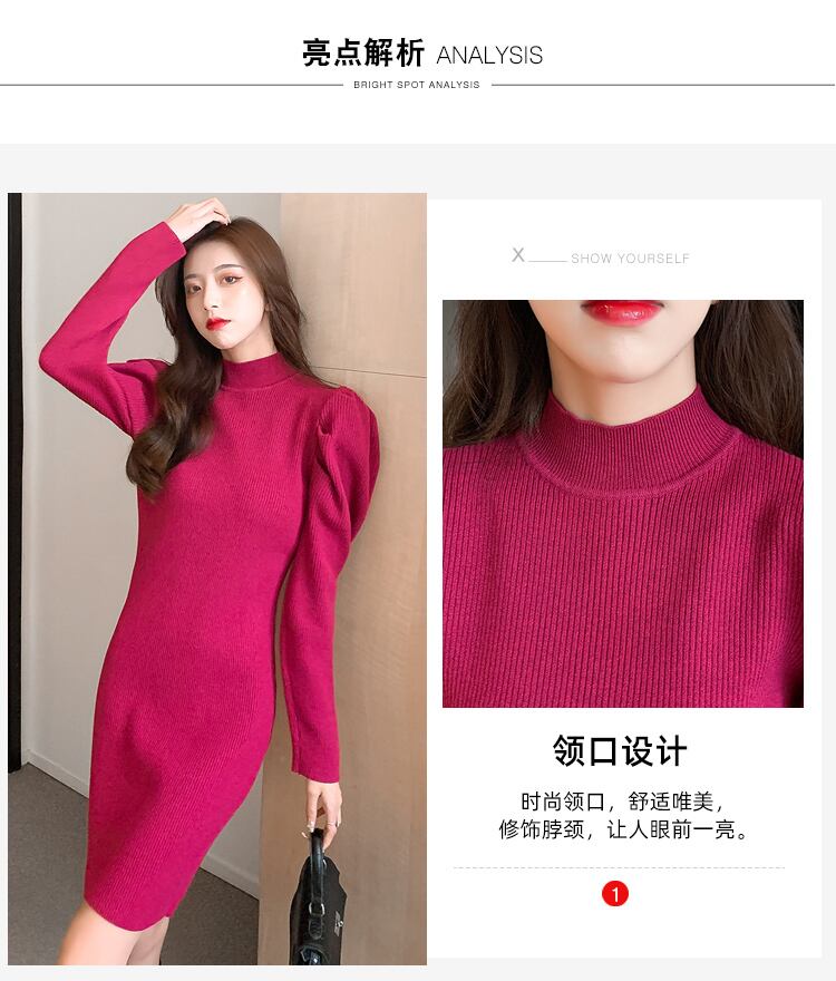 2020年秋冬新作フレンチレトロセミハイカラーパフスリーブウエストスリム気質スリムニットワンピース オータム 秋物 ウィンター 冬物 yingd2220837451