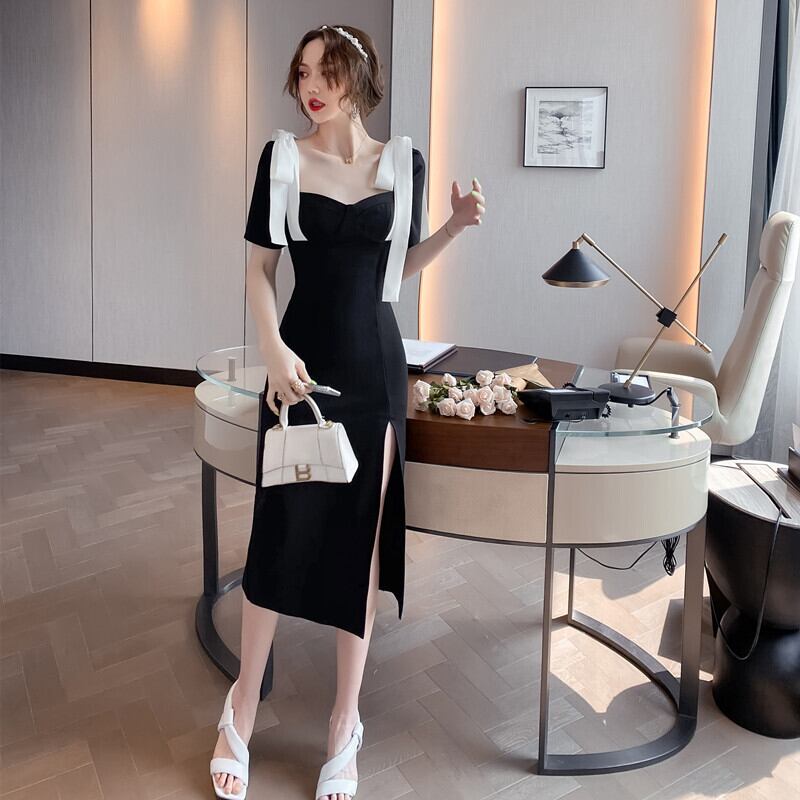 フランスのレトロなヘップバーンスタイルのウエストと薄い気質のリトルブラックドレスロイヤルシスターライトおなじみのスタイルセクシーなスプリットドレス女性の夏 サマー 夏物 yingd17217695305