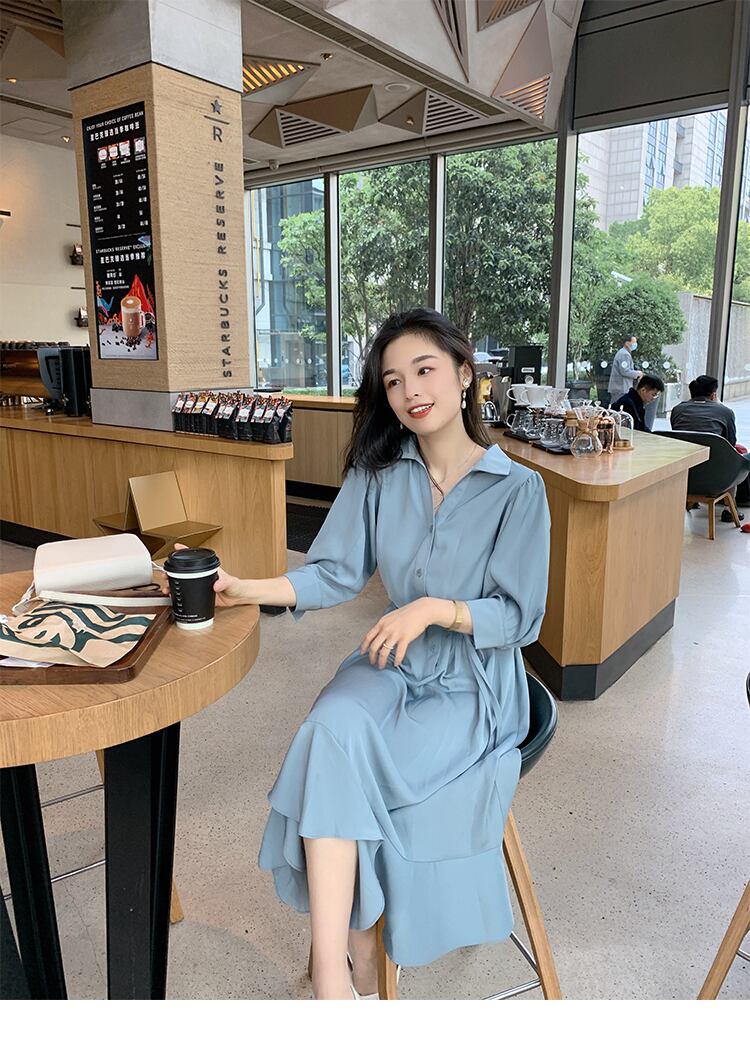 2020年初秋の新しい女性のフランスのレトロなシャツのスカートのウエストと薄い気質の中程度の長さのフィッシュテールドレスの女性 オータム 秋物 yingd76726332719