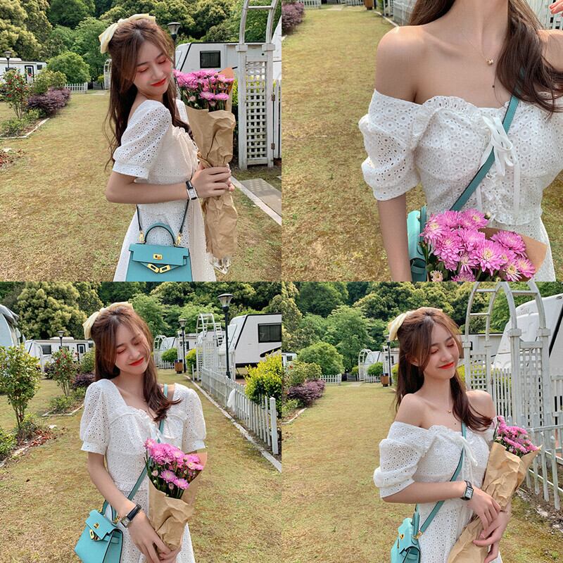 白いドレスの女性2020年の新しい夏フランスのレトロなニッチ初恋の妖精のスカートスーパー妖精の甘いエスト ホワイト 大人ガーリー スウィート キュート カジュアル サマー 夏物 yingd52589438483
