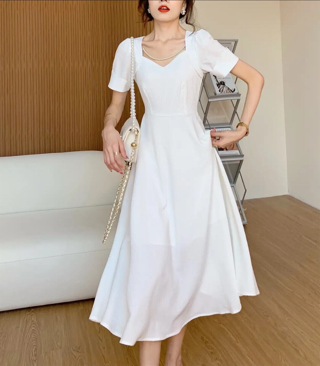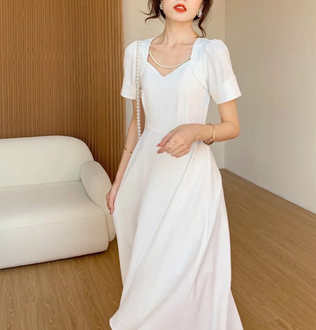 フランスのレトロな優しいスタイルのティーブレイクベルフラワースカートライトラグジュアリー女性気質小さなスカートヘップバーンスタイルの白いドレス夏 ホワイト サマー 夏物 フラワーデザイン yingd95863167952