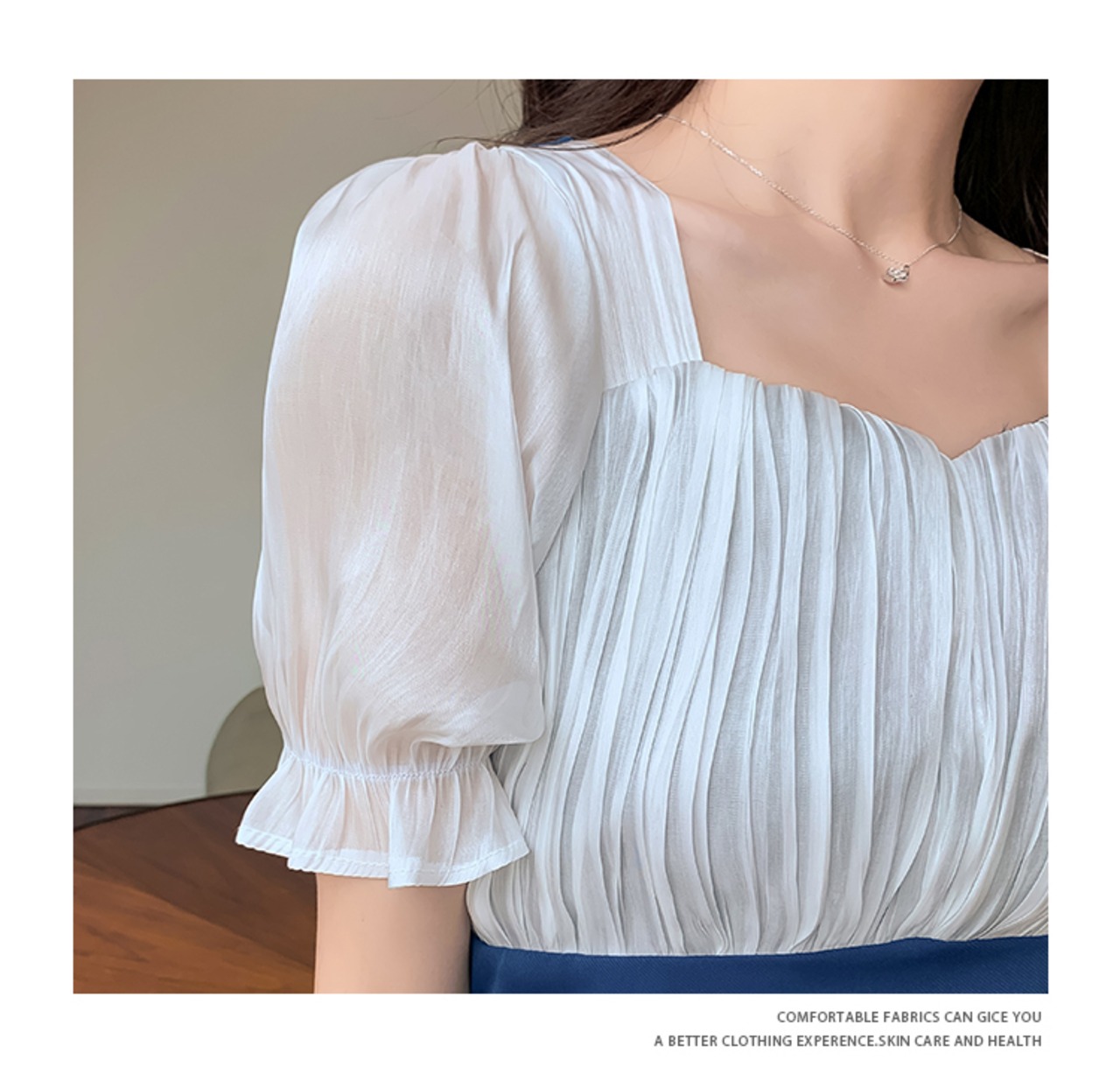 フランスのレトロな茎オレンジ初恋スカートデザインセンススクエアネックパフスリーブセクシーなスプリットシフォンステッチドレス女性の夏 サマー 夏物 スクウェア yingd23196249259