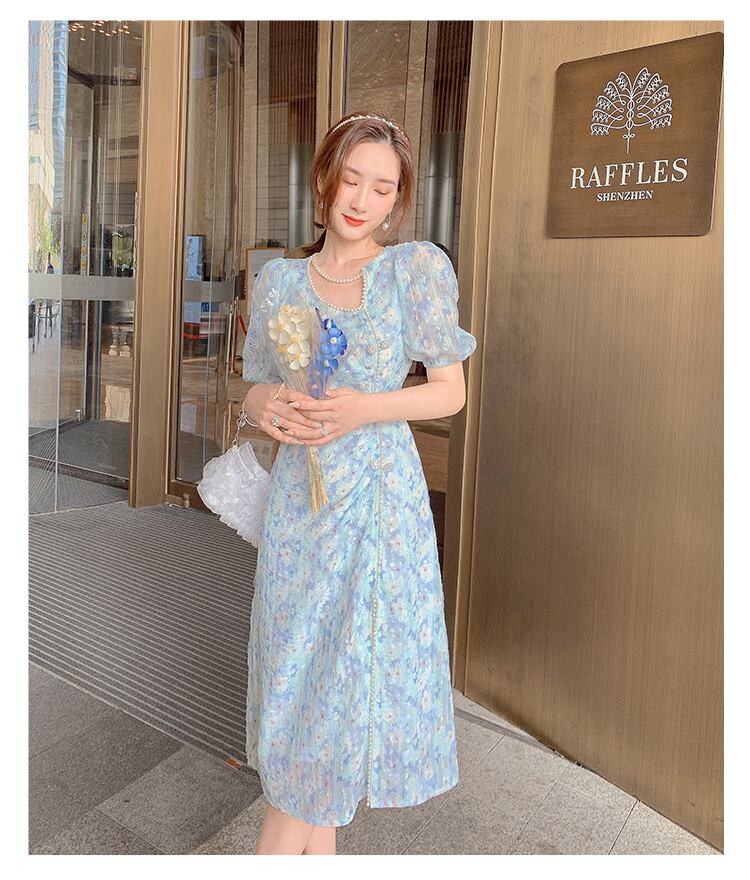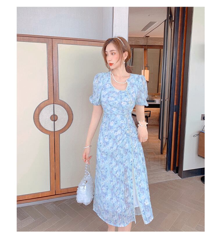 フランスのレトロなベルフラワーティーブレイクモネスカートデザインセンスニッチロイヤルシスターライトおなじみのスタイル改善されたチャイナドレス女性の夏 サマー 夏物 フラワーデザイン yingd24389016188