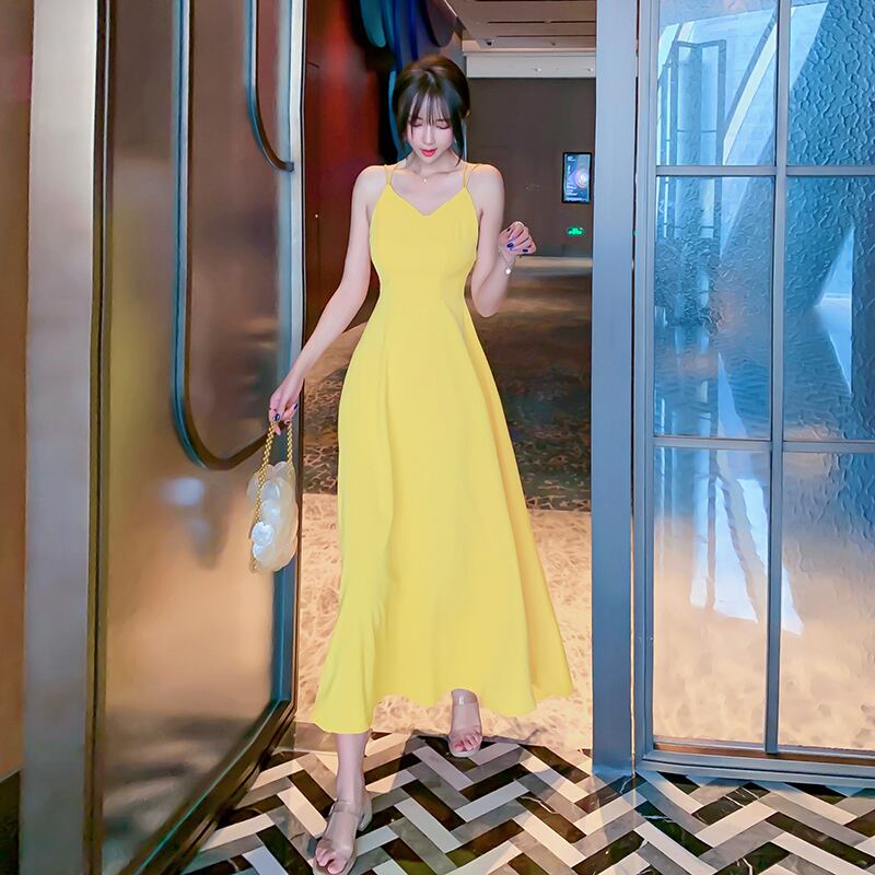 フランスのレトロな冷風ハイエンドスリングドレス女性の夏のドレス2021新しい気質セクシーなスリングドレス サマー 夏物 yingd4461812859