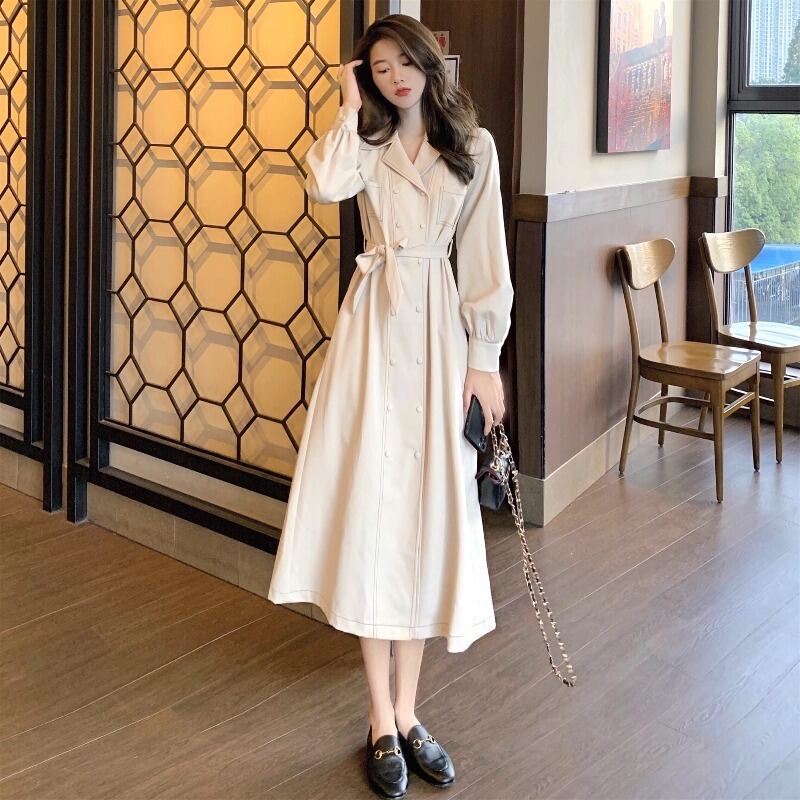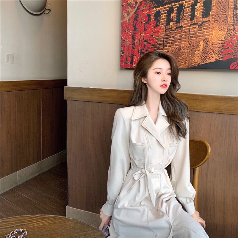 フレンチレトロロングドレスは薄くて気質の軽い大人っぽいスタイルのダブルブレストウエスト長袖スーツドレスレディース秋冬 オータム 秋物 ウィンター 冬物 yingd80711503936