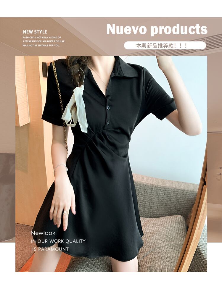 フランスのレトロなヘップバーンスタイルのリトルブラックドレス冷風ハイエンド気質の女神ファンウエストシャツドレス女性の夏 サマー 夏物 yingd81795178726