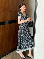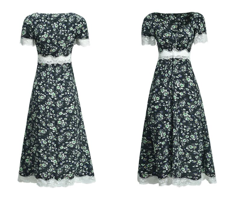 フランスのニッチなレトロなヘップバーンスタイルのロングドレスは薄くて気質の良い優しい風パフスリーブ花柄ドレス女性の夏 サマー 夏物 yingd60904413152