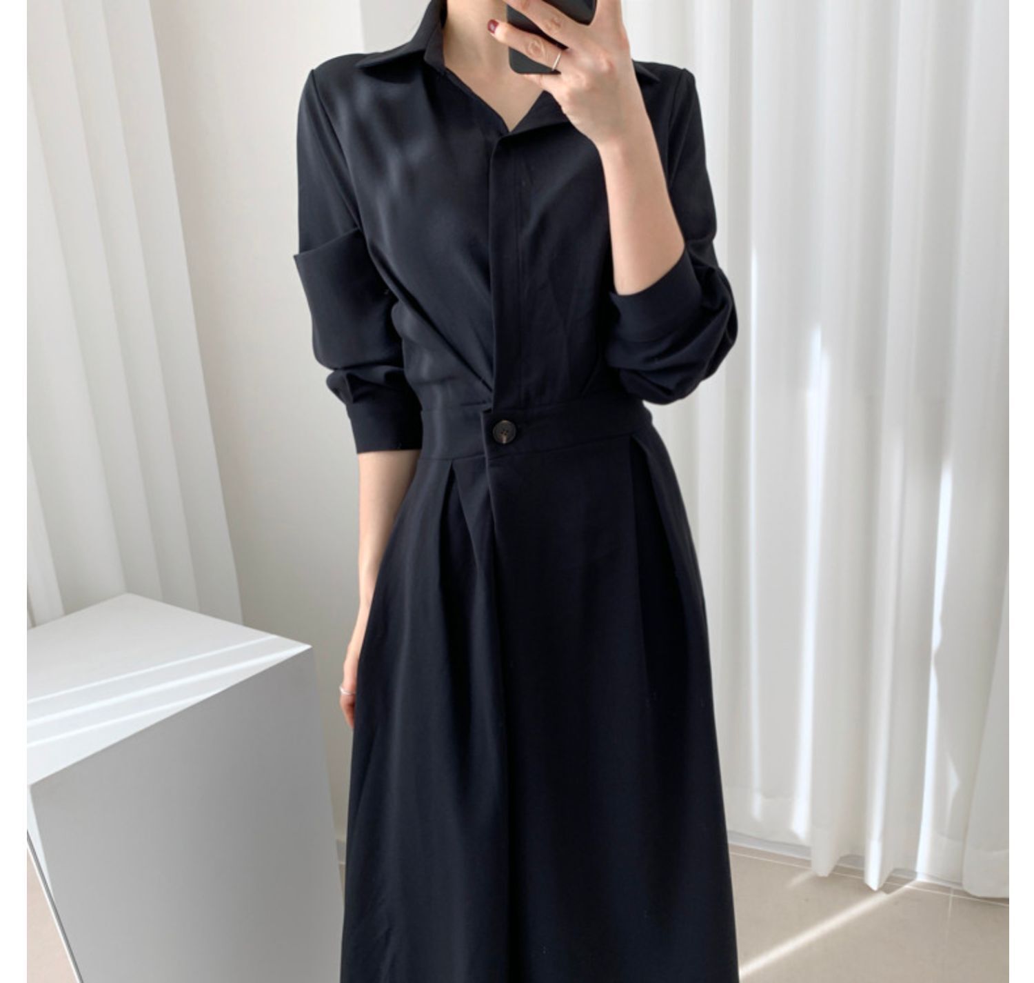 フレンチレトロロングスカートデザインセンススカートライトおなじみスタイルウエストウエスト薄手長袖シャツドレスレディース秋冬 オータム 秋物 ウィンター 冬物 yingd46570737916