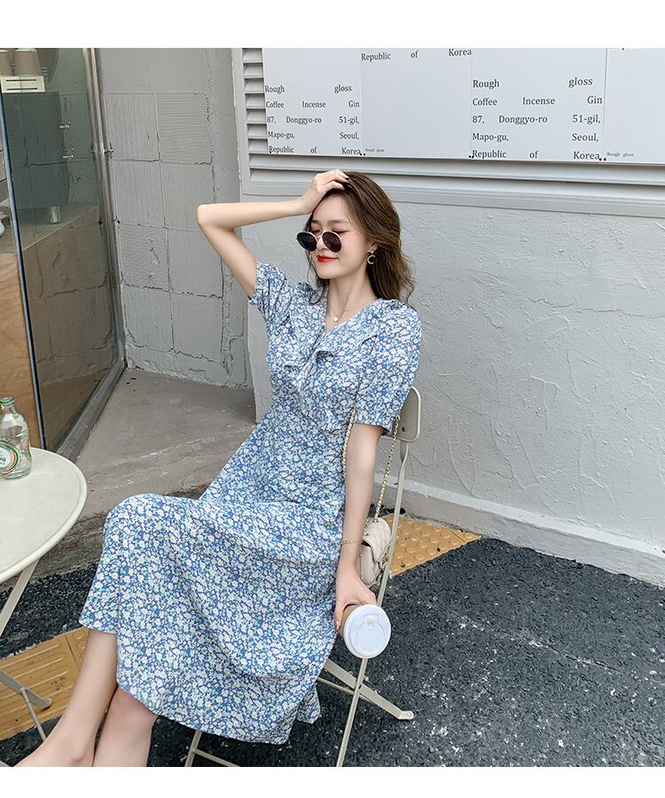 夏の薄いロングスカートフランスのレトロな気質の女神ファンの穏やかな風は塩辛くて甘いVネックの花柄のドレスの女性になることができます 大人ガーリー スウィート キュート カジュアル サマー 夏物 yingd27363370188